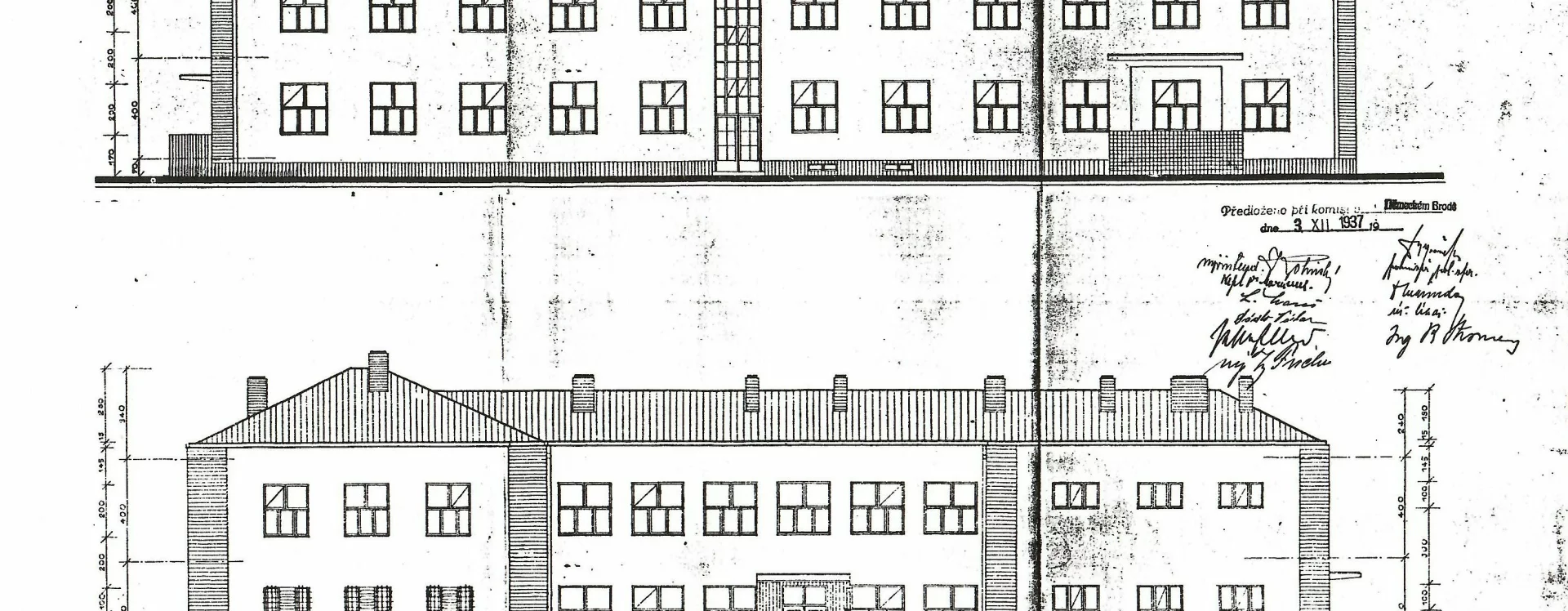 The response was swift—by September 1936, the contract had been awarded to Brod. In order to support local employment, the municipal authorities secured an important condition: the construction had to be carried out by a local building company, “even if they were 3% more expensive.” Preparations began immediately. Work also focused on meeting the ministry’s requirement to provide suitable accommodation for the newly arriving workers, for whom the present-day rental houses at 578 and 579 Sázavská street were built, which were completed in 1938 by the builder Eduard Nedbal.