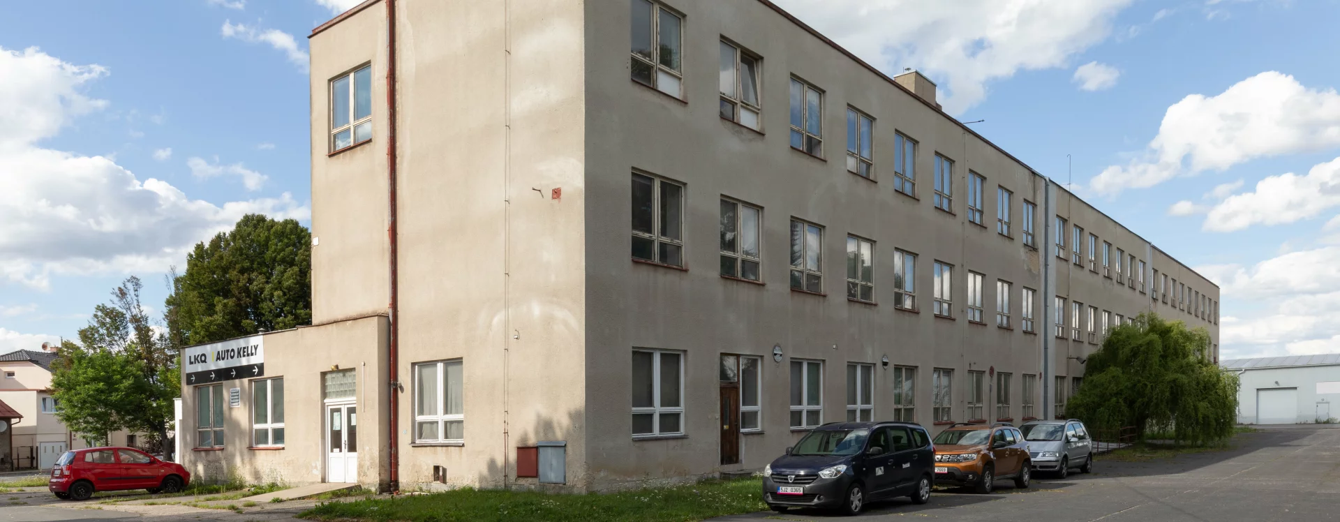 Two complexes were constructed within close proximity of each other. The first was the military barracks, located on a plot bounded by Čechova and Kpt. Nálepky streets, with the rear edge following the line of the Havlíčkův Brod–Humpolec railway. It comprised a two-storey building for enlisted personnel, its main facade facing the barracks courtyard (the military parade ground), and a building containing infirmaries with canteens, a guardhouse, and a detention cell. The eastern section was lined with garages, workshops and storage facilities, opening onto the courtyard. In the south-western corner were a gas training room and a reinforced storage room for munitions and signal flares. At the western edge of the site stood a residential building for officers and senior non-commissioned officers.
