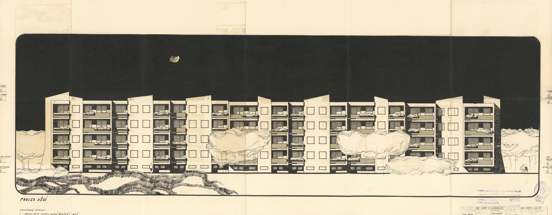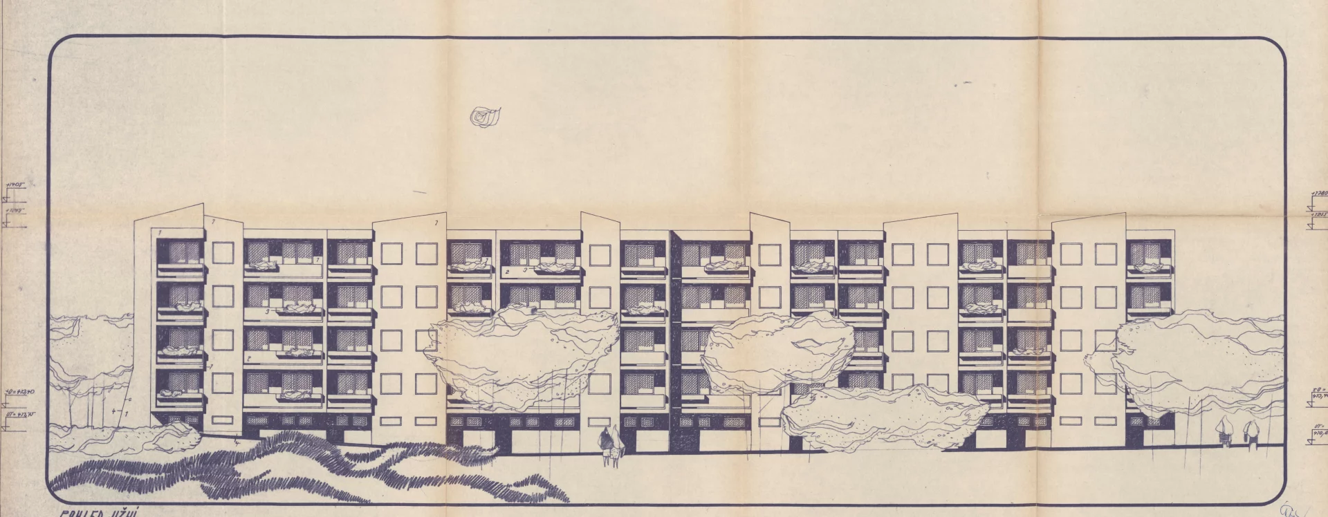 Since 1965, a portion of construction costs for public buildings and spaces had to be allocated to works of art, which aimed to promote the cultural and aesthetic education of the population in the socialist state. In 1979, the new housing estate thus acquired a monumental sculpture, located near one of the pedestrian passages between the walls from the housing estate towards the Sázava River.