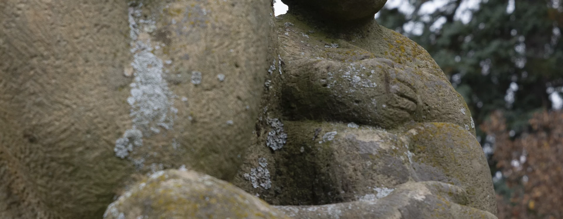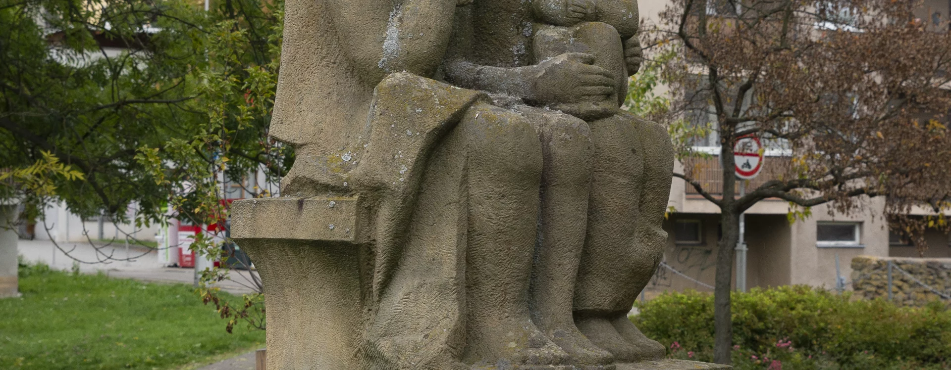 Hyliš’s Family–a seated father and mother with a child on her lap, consists of slightly stylized figures that still seem set within the prismatic blocks of stone from which the sculpture is carved. The static and dignified appearance of the figures partly stems from the concept of period realism, but it transforms the treatment of the theme into a timeless validity, unrestricted by the ideology of the time. Thanks to his university work, Karel Hyliš had an overview of artistic work not only within socialist Czechoslovakia, but also abroad, which allowed him to transcend the limits of regional art in his search for the ideal representation of the human figure.
