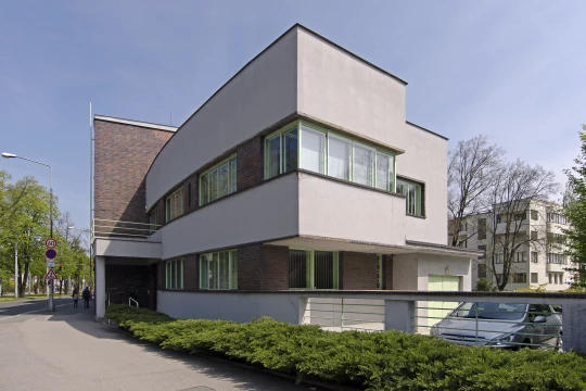 Between 1931 and 1933, the building of the municipal baths in Hradec Králové, designed by Liska, was built. The architect considered this project as the flagship of his life’s work. With its equipment (e.g. artificial waves) and size, this “white fairy-tale on the banks of the Elbe River” at 842 Eliščino nábřeží Embankment, designed in the nautical forms of functionalism, became one of the main manifests of modern Czechoslovak architecture in Hradec Králové. The list of major Liska’s designs includes his own villa at 842 Střelecká Street in Hradec Králové, built in 1932. This project, combining traditional forms (the neo-classical peristyle in the garden, tiled panelling in the stair tower) and avant-garde modernism (strip windows, an irregular disposition, a purist façade), illustrates the architect’s ability to switch from his conservative training to new trendy architectural trends.