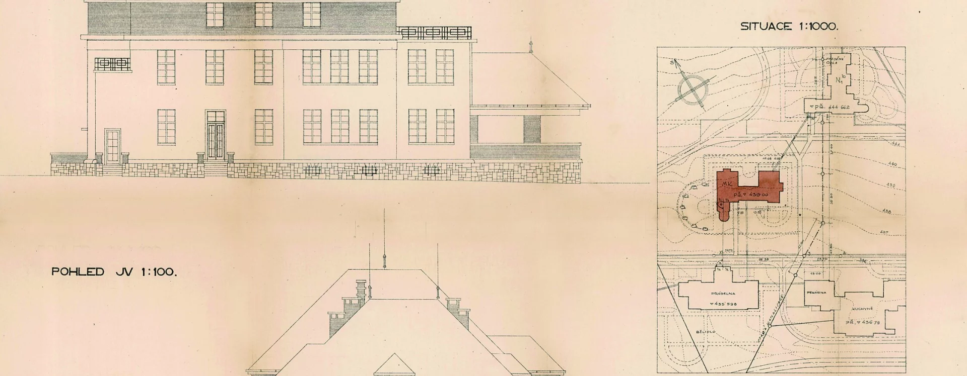 The task of preparing a detailed architectural concept for the complex—reflecting the latest trends and developments in psychiatry and carried out under the supervision of the specially established Advisory Committee for the Construction of New Provincial Institutes for the Mentally Ill—was entrusted to Dr Růžička, director of the institution in Kosmonosy. This dynamic phase of preparation and construction work was interrupted by the outbreak of the First World War, as well as by a decline in the number of patients.