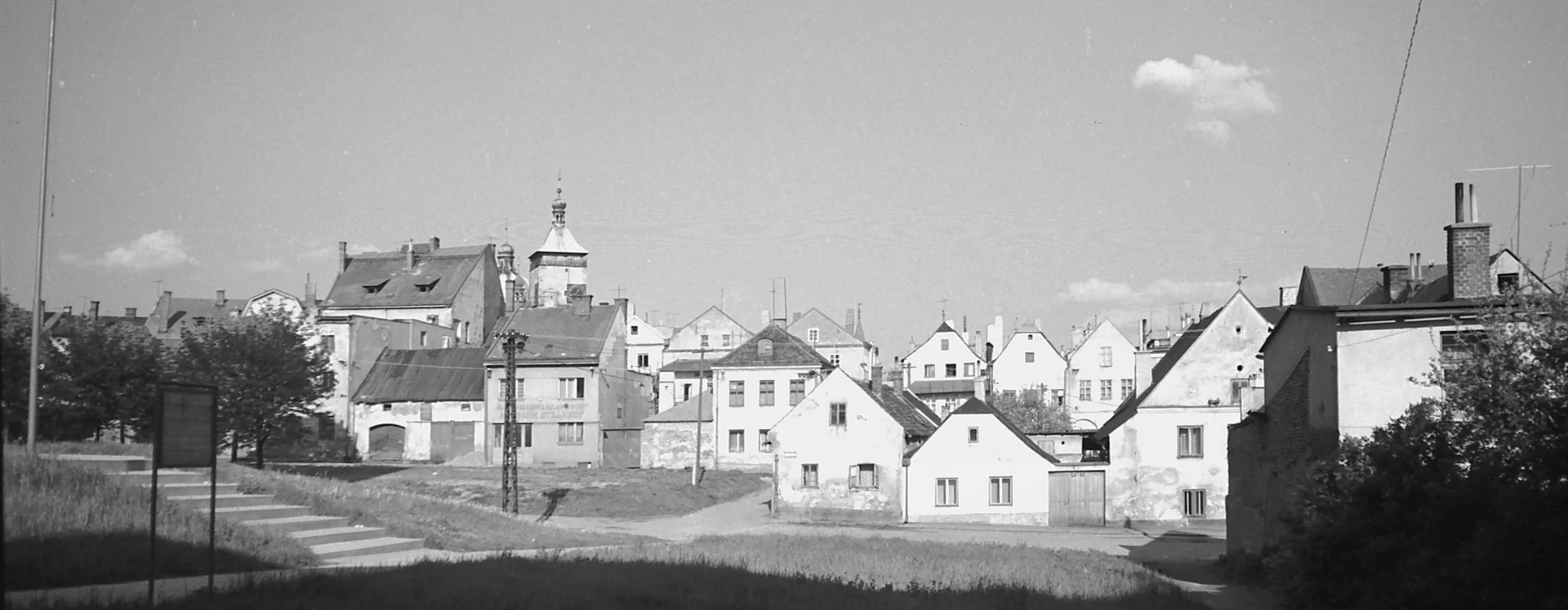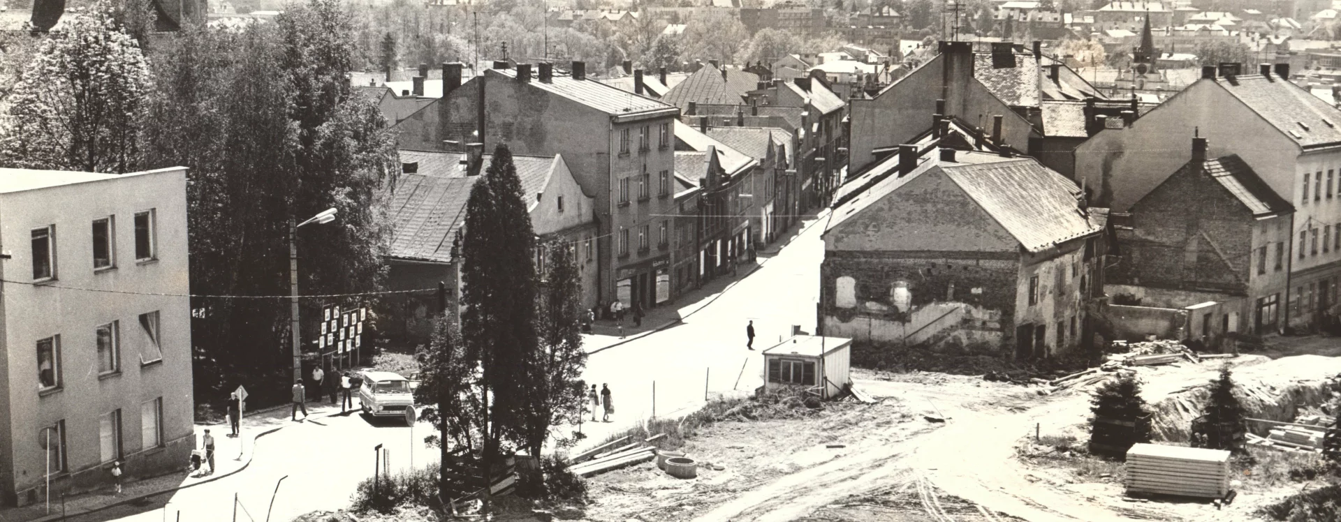 The original historic buildings adjacent to the main Havlíček Square were replaced by housing estates in the 1970s and 1980s. The decision to demolish the old square and the adjacent Louže district and replace them with a modern housing estate was made by the Havlíčkův Brod Municipal National Committee in 1966 due to the dilapidated state of the housing stock and engineering networks. The new housing estate was intended to help address the critical housing situation the expanding town of Havlíčkův Brod had been facing since the beginning of the 20th century.