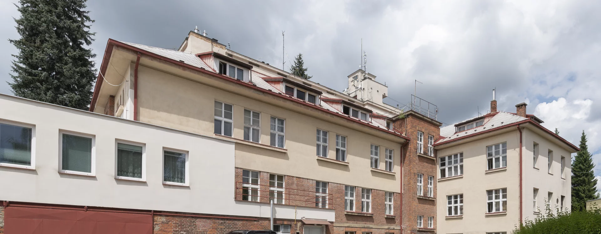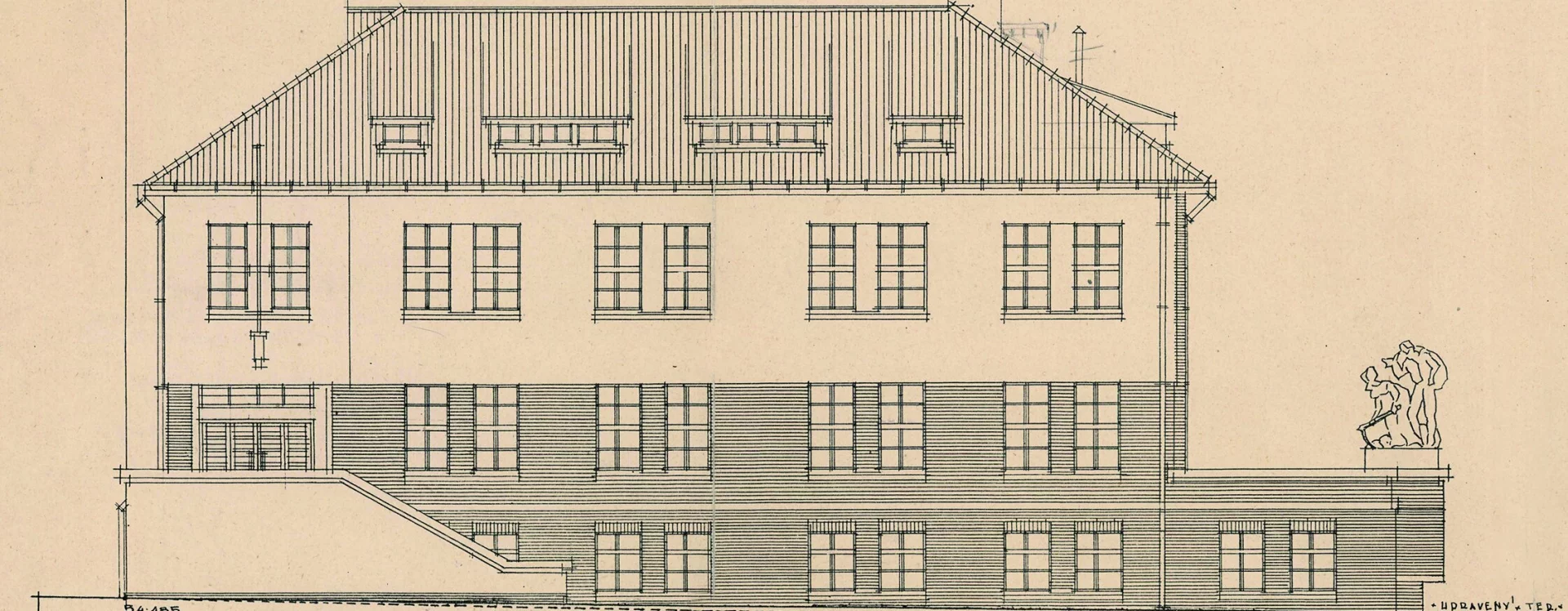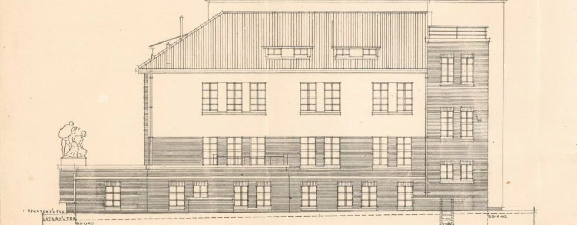 One of the last significant alterations to the building took place in 1949–1950, when, among other changes, its southeast wing was raised by an additional storey and finished with a hipped roof with dormers, almost entirely obscuring the original tower. This modification disrupted the compositional balance of Petřík’s original design. Even more regrettable was another intervention in the form of an extension added in 1978.