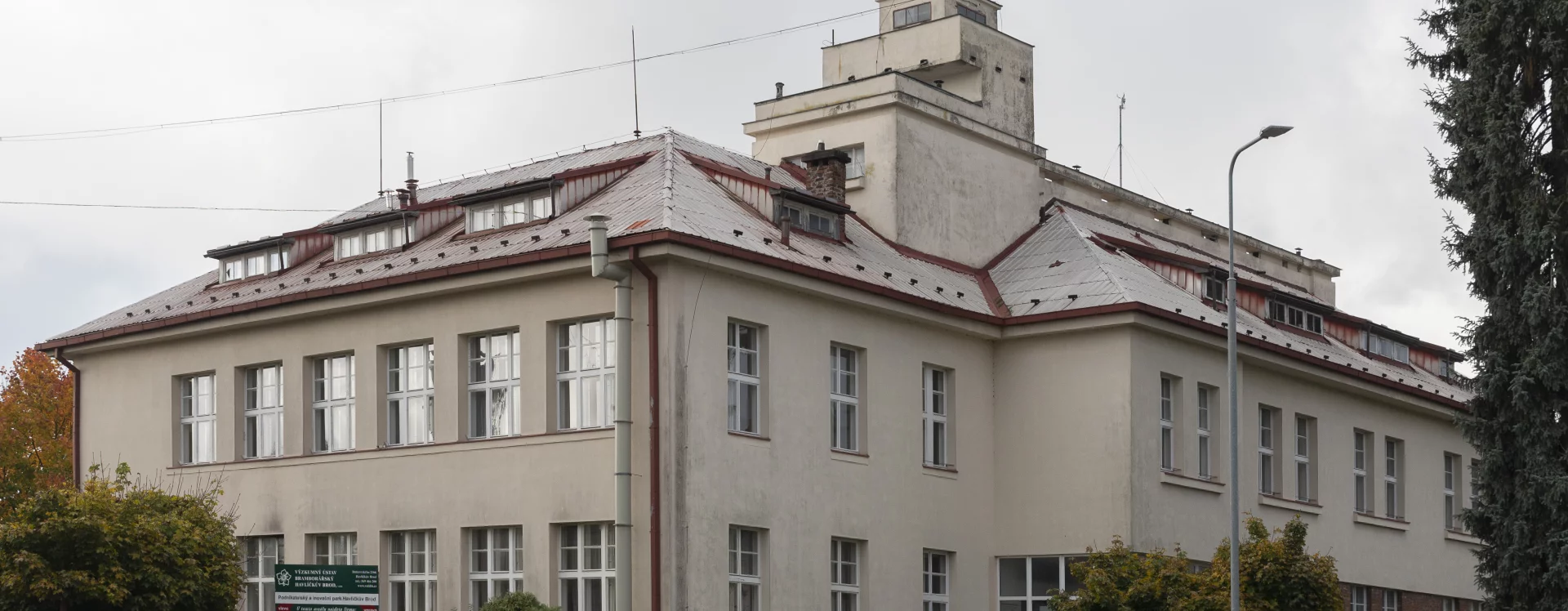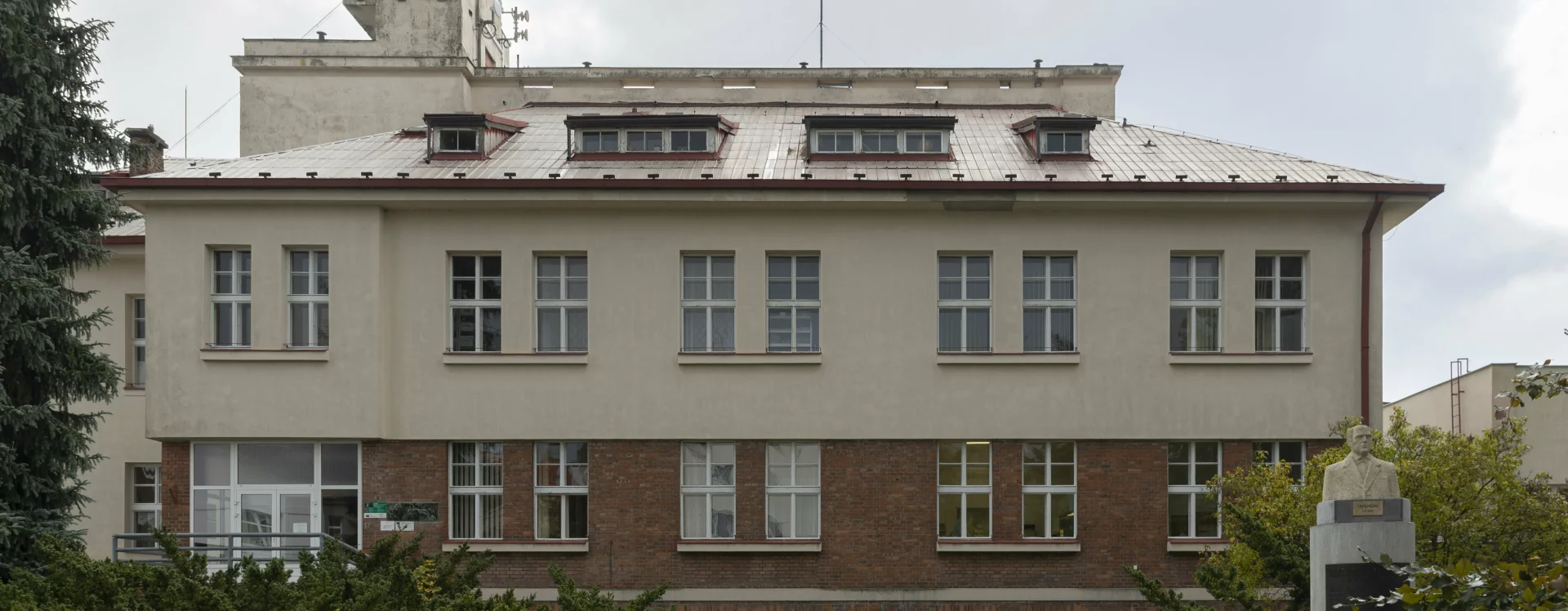 At the time, the still-popular Neo-Classical approach might have been expected, an approach that Petřík had fully developed in his design for the College of Agricultural and Forestry Engineering in Prague–Dejvice (in the same year, with A. Engel). For Německý (Havlíčkův) Brod, however, Petřík chose to adopt a far bolder design. For the facade, he employed cladding and openly drew on influences from Functionalist architecture—incorporating a tower, metal railings and breaking up the mass of the building with low side wings. He combined a traditionalist approach with a highly progressive concept, symbolically linking the solidity and permanence of a significant, long-established institution with the contemporary, practical vision of a modern scientific centre.