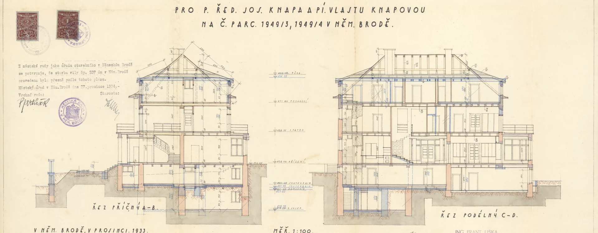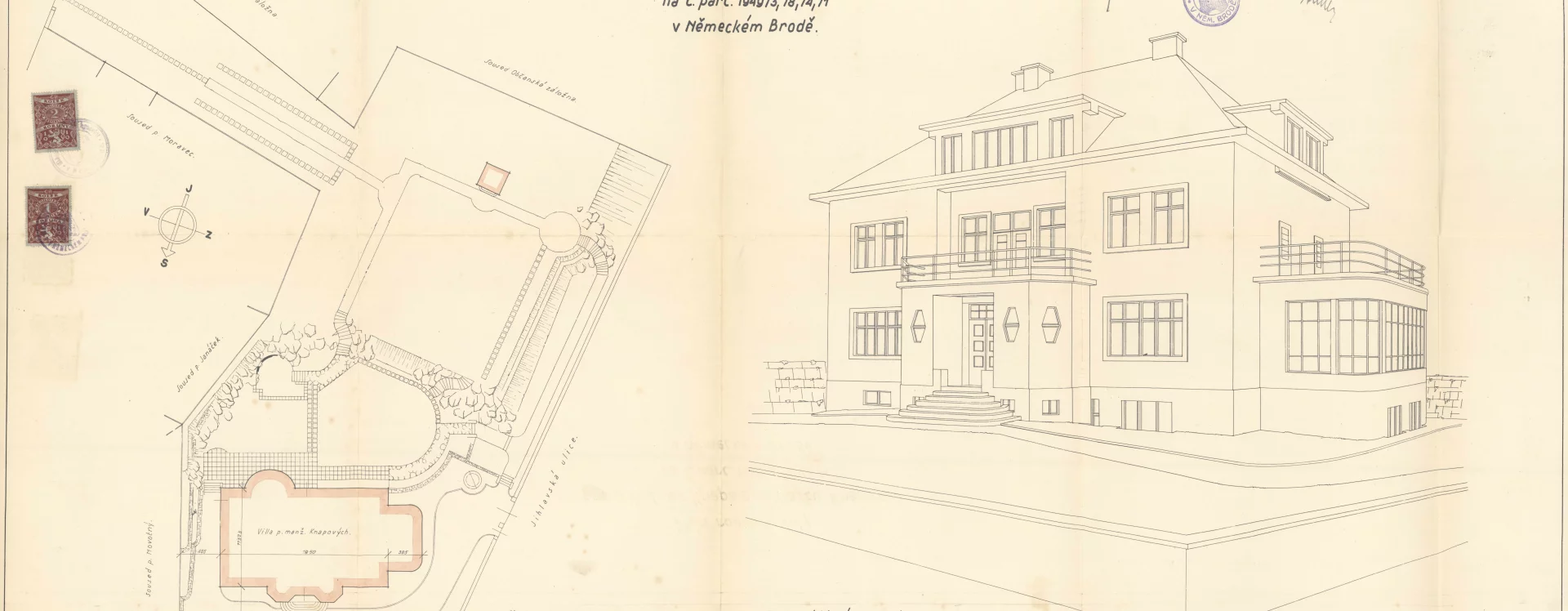 During the interwar period, the former Knap Villa belonged to one of the wealthiest men in the town: the young, capable and successful director of the J. Veselý & Sons factory, Josef Knap, and his wife Vlasta, daughter of the Havlíčkův Brod printer František Riedl. The local builder František Liška is said to have originally planned the villa in a historicising style, but its final form reflected an awareness of contemporary modern architectural trends. New ideas could certainly have been introduced both by the owners and by the project’s designer, while money seemed to be no object.