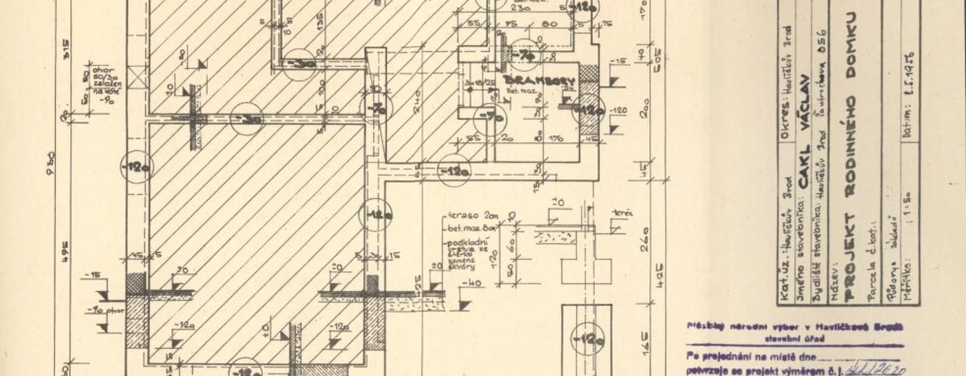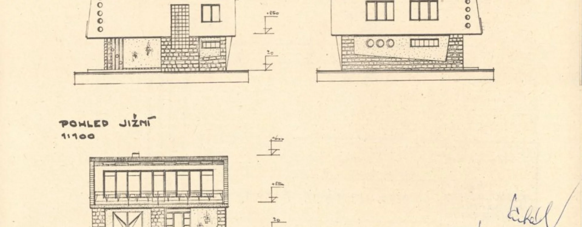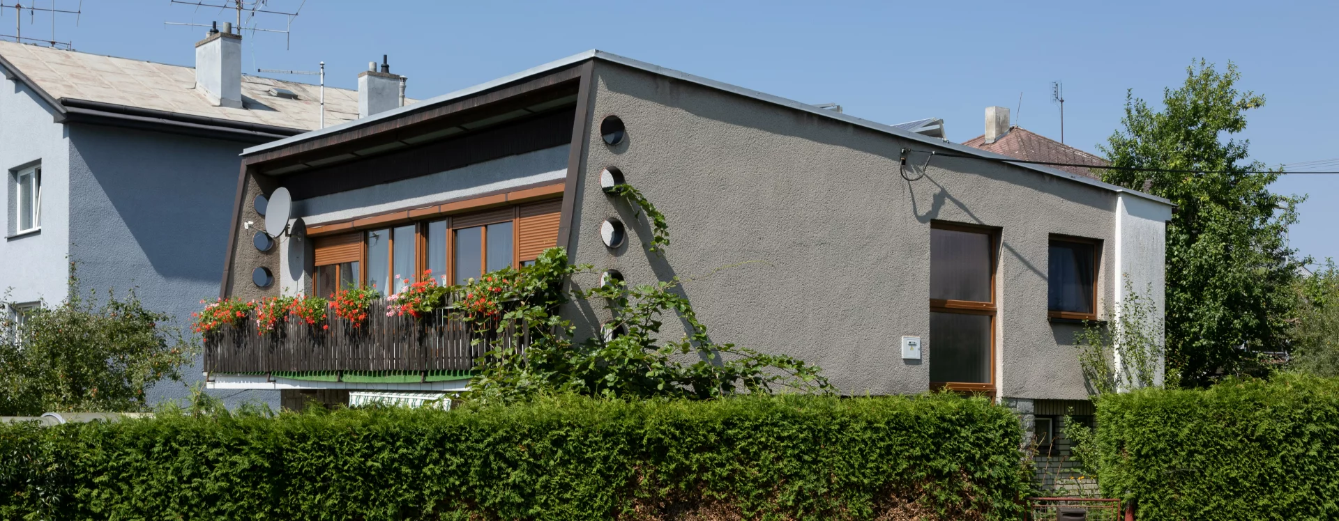 Between 1968 and 1970, the Cakl couple built a standardized detached house on a corner plot, now formed by the intersection of Práčat and Jeronýmova streets, according to a design by the Šumperk builder Josef Vaněk (1932–1999).