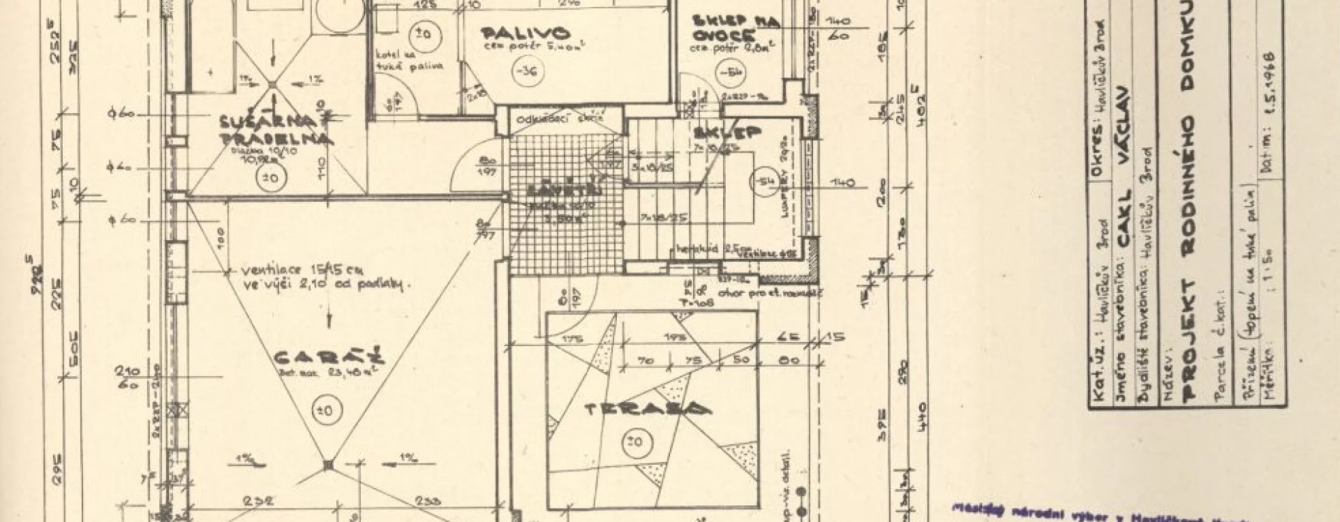 The design for a Type V family house, popularly known as a ‘Šumperák’, was created by Vaněk in 1966, and although private construction was frowned upon by the regime at the time in favour of collective housing, the modernist house with a new layout and design became a phenomenon, with variations being built until the 1980s. In the former Czechoslovakia, around 5,000 buildings were constructed over a period of 20 years. The project designer summarized his main ideas in the very first sentence of the technical report: “Saving on materials, achieving modern living, and reducing construction costs are what led me to pursue this type of detached house design.”