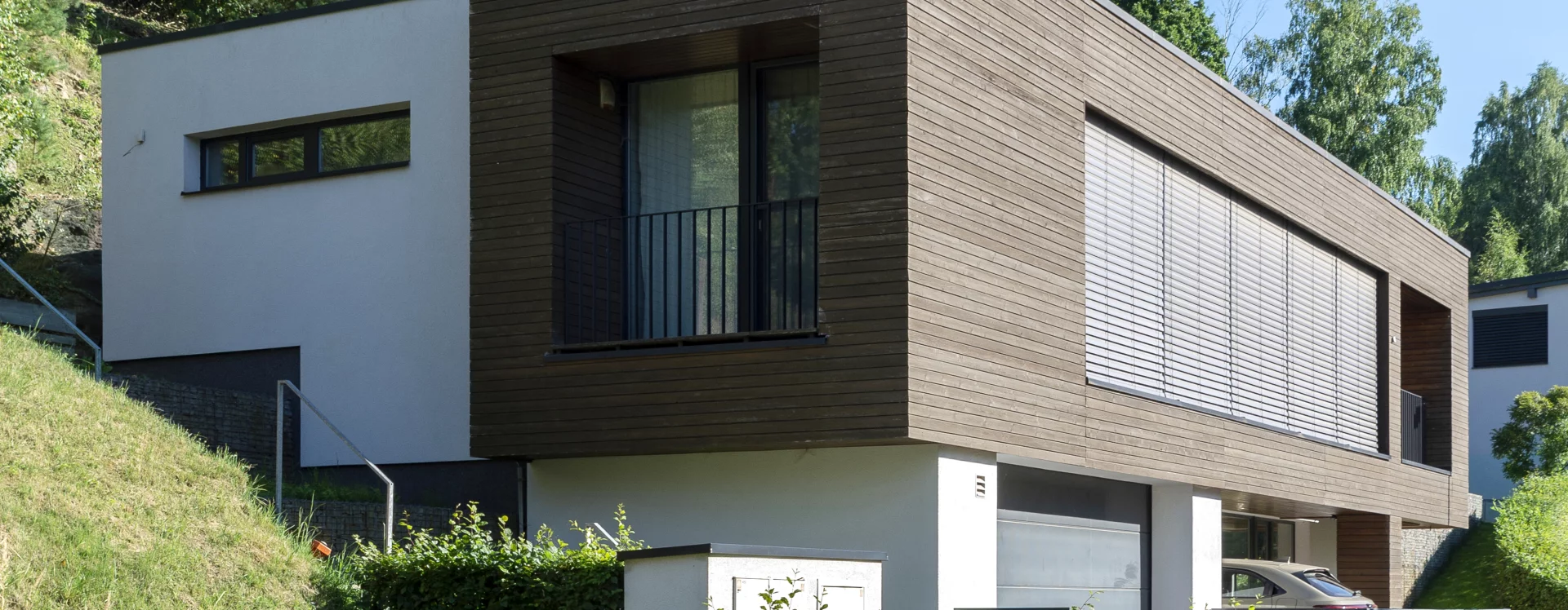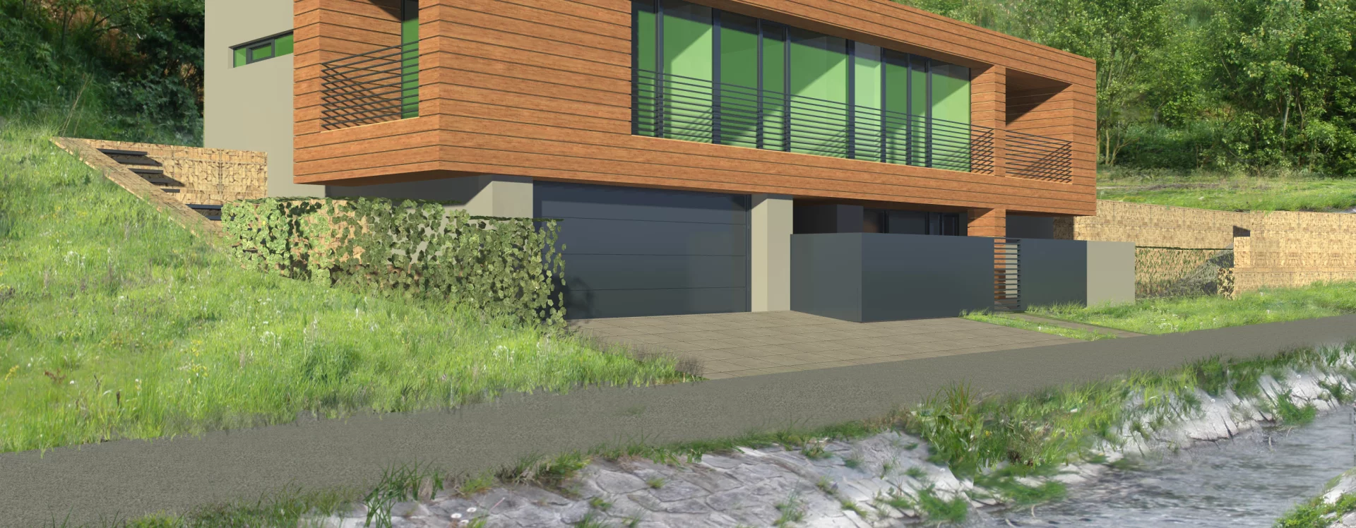 A fine example of contemporary residential architecture in Havlíčkův Brod is the single-generation Křehlík villa, built on a sloping site overlooking the Žabinec stream valley. The building plot, with its challenging terrain, offered the owners the opportunity to build a home in a peaceful, almost rural setting, yet within easy reach of the town centre. With its main living areas located on the upper floor, the house provides an intriguing visual connection between the interior and the surrounding landscape.