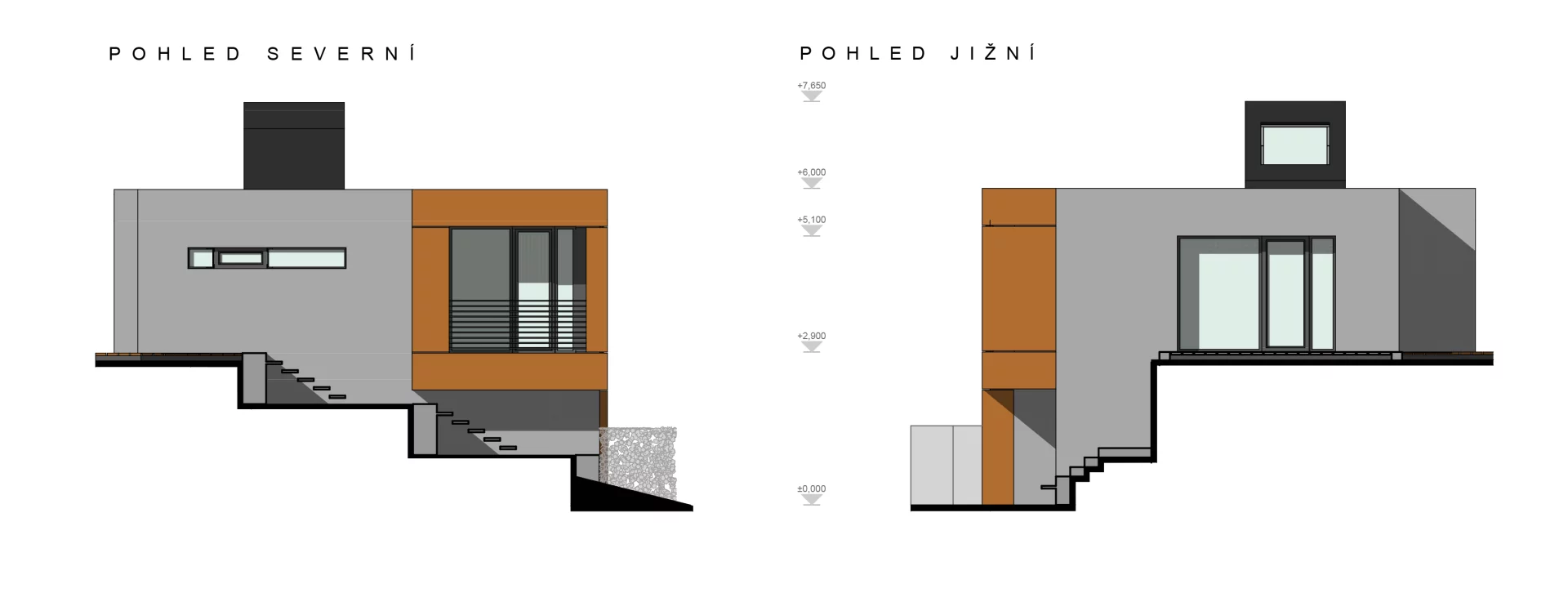 The owners themselves developed the basic concept for embedding the house into the terrain, along with the final layout and overall project design. They entrusted the architectural study and visual expression to architect Milan Stejskal of Atelier 02 in Havlíčkův Brod, whose work and artistic approach they were professionally familiar with and personally appreciated.