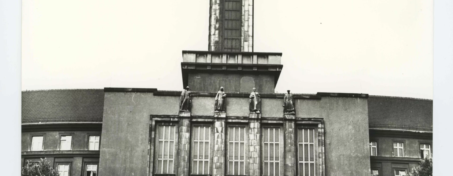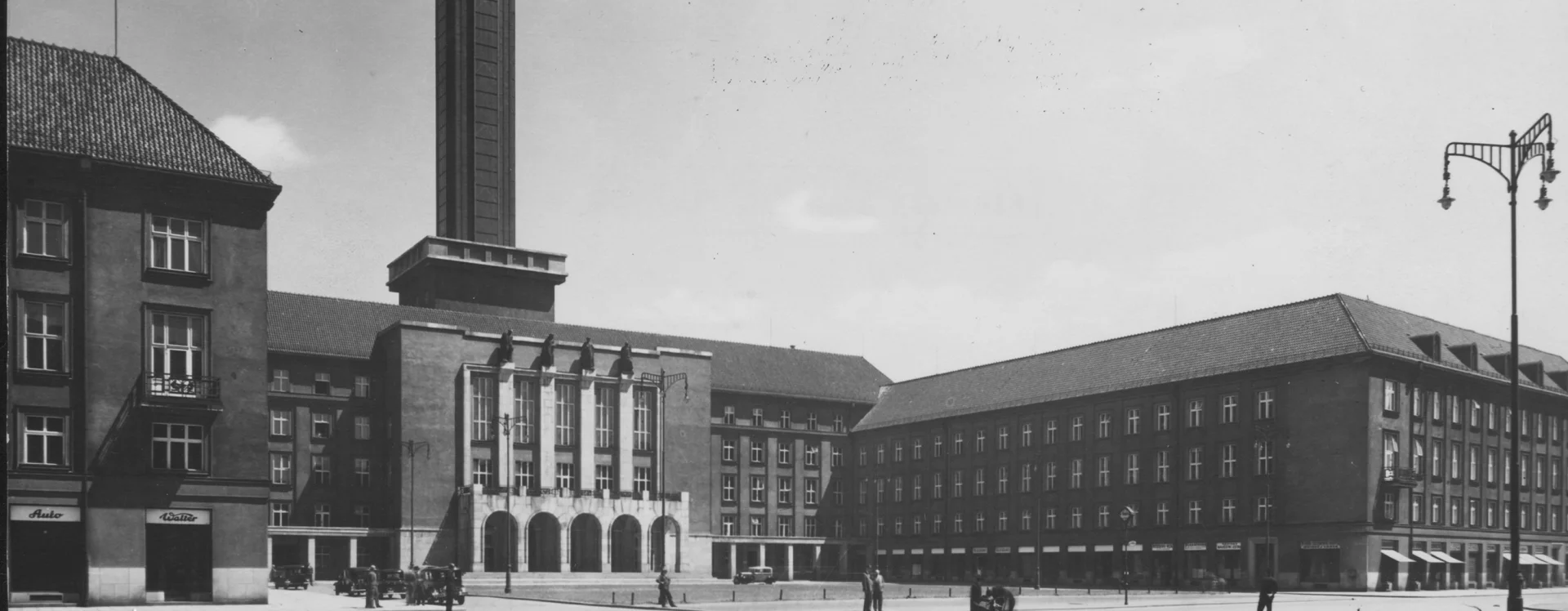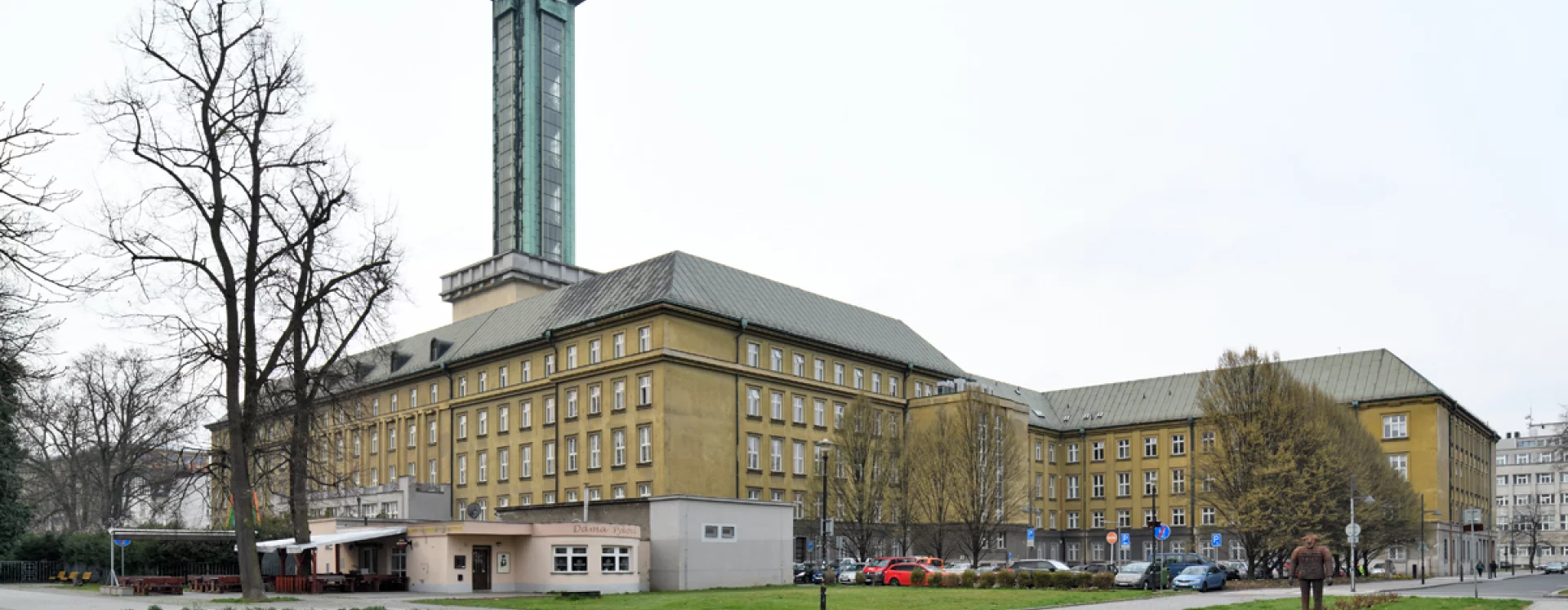 From the Middle Ages until the 1920s, the town hall of Moravská Ostrava stood on the historic square (now Masarykovo Square). As the town grew, the existing building no longer met the needs of the expanding municipality. A crucial impulse for constructing a new town hall was the plan to merge Moravská Ostrava with neighbouring municipalities (Vítkovice, Přívoz, Zábřeh, Mariánské Hory, Hrabůvka, and Nová Ves) to form Greater Ostrava. At the same time, the 1920 Act on the Establishment of regional administrative districts (called “župy”) introduced entirely new territorial administrative units for which the respective centres were expected to provide suitable premises. Moravská Ostrava therefore began planning a new building that could house both the municipal administration and the future district offices. From several possible sites, the city selected the area of the former shooting range (Nová střelnice) near the River Ostravice. Although outside the historic core, it lay close to other offices, institutions and company headquarters, was well connected by public transport, and offered space for creating a dignified public square.