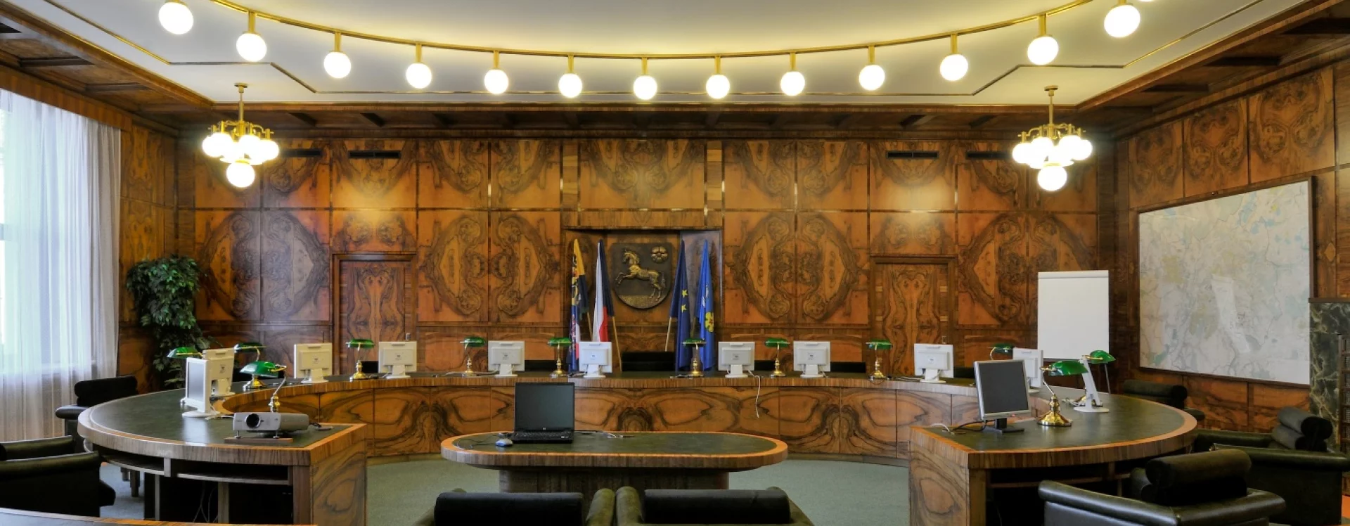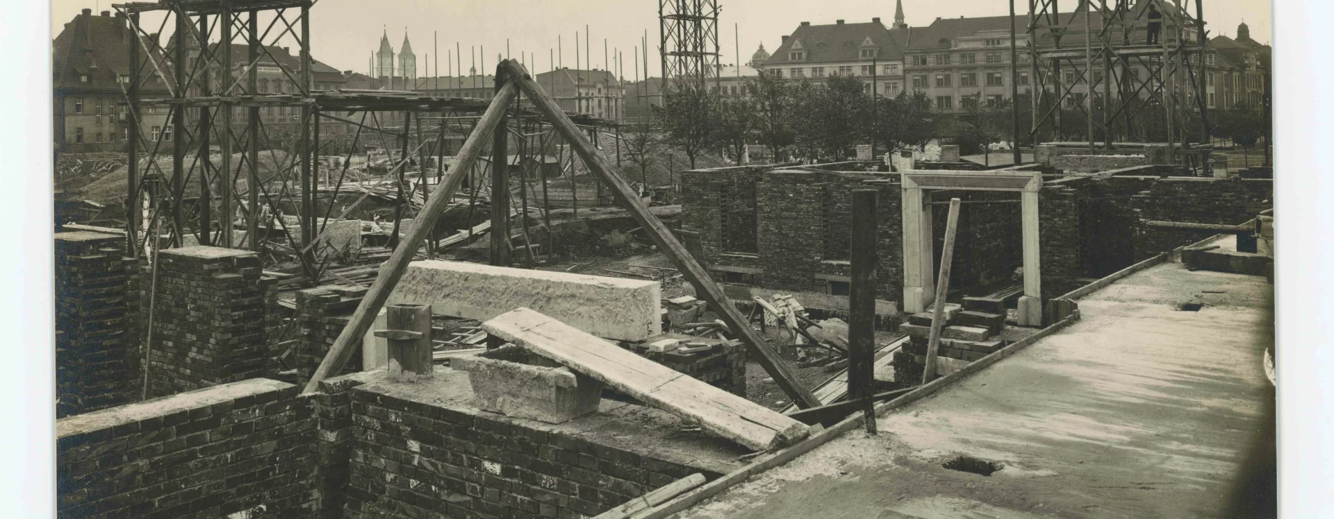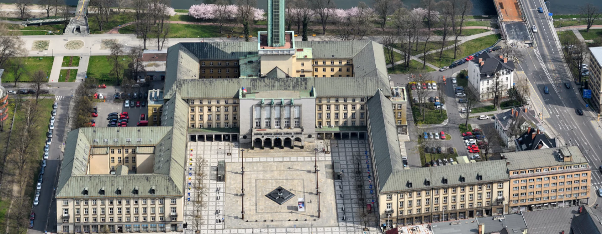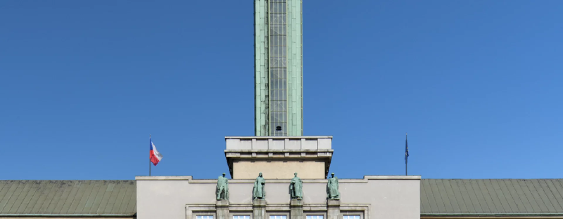 From the Middle Ages until the 1920s, the town hall of Moravská Ostrava stood on the historic square (now Masarykovo Square). As the town grew, the existing building no longer met the needs of the expanding municipality. A crucial impulse for constructing a new town hall was the plan to merge Moravská Ostrava with neighbouring municipalities (Vítkovice, Přívoz, Zábřeh, Mariánské Hory, Hrabůvka, and Nová Ves) to form Greater Ostrava. At the same time, the 1920 Act on the Establishment of regional administrative districts (called “župy”) introduced entirely new territorial administrative units for which the respective centres were expected to provide suitable premises. Moravská Ostrava therefore began planning a new building that could house both the municipal administration and the future district offices. From several possible sites, the city selected the area of the former shooting range (Nová střelnice) near the River Ostravice. Although outside the historic core, it lay close to other offices, institutions and company headquarters, was well connected by public transport, and offered space for creating a dignified public square.