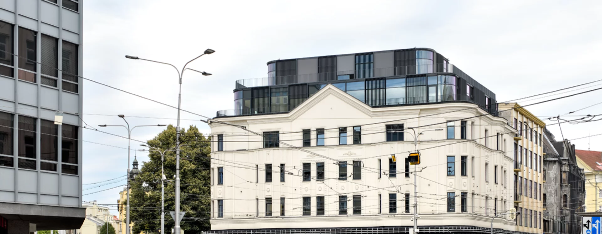 The area around today’s 28. října Avenue was once part of the Vítkovice suburb located beyond the Hrabovská (Vítkovice) Gate. Until the second half of the 19th century, the development in this part of the city – or rather, its outskirts – consisted mainly of wooden houses, with masonry buildings appearing only from the 1860s. One of the centres of new construction that accompanied the city’s expansion beyond the historic core (following the demolition of the remaining town walls in 1833) emerged along the newly laid Nádražní Street after the Přívoz railway station was built. The initial building development was somewhat chaotic; only in 1898 did the city council approve plans to regulate construction activity along Nádražní Street between Moravská Ostrava and Přívoz, as well as in several inner-city streets. The western side of Nádražní Street subsequently became the city’s largest district of apartment houses. A major turning point came in 1927, when the municipality issued a decree granting developers a 35-year tax exemption, sparking an unprecedented construction boom.