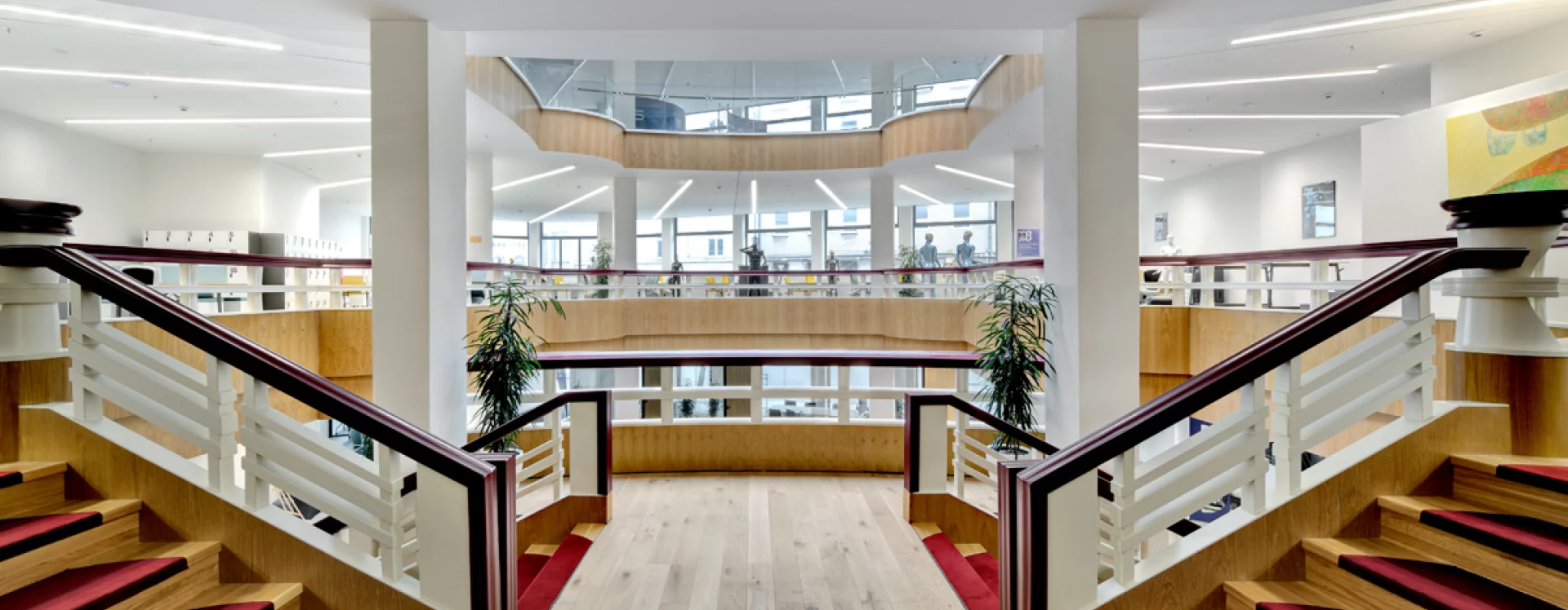 After 1989, the department store was privatised. In 2000, its owner Kamil Kolek carried out unauthorised construction work, causing a structural collapse that affected parts of building no. 284. In 2008, the development company Amadeus Real proposed to incorporate the entire block into a new large shopping gallery between 28. října Avenue and Edvarda Beneše Square, but the project was never realised. Since 2021, the buildings nos. 243 and 284 have been undergoing adaptation for the Boutique Business Incubator Ostravica (offices, creative studios, gastronomy, and social and commercial activities) based on a design by architect Martin Náhlovský from the Master Design studio. The restoration has succeeded in preserving the ceramic façade and reinstating the original composition of the frontage with new windows and doors. The balcony railings with the T logo and the main sales hall on the ground floor, with its iconic staircase, have been restored. New wooden elements were crafted to replace those destroyed by water damage, including the display cabinets flanking the staircase in the mezzanine. Later additions to the skylight railing were replaced by full-height glass barriers with metal handrails. With the approval of heritage authorities, the skylight roof was raised to extend above the office floors.