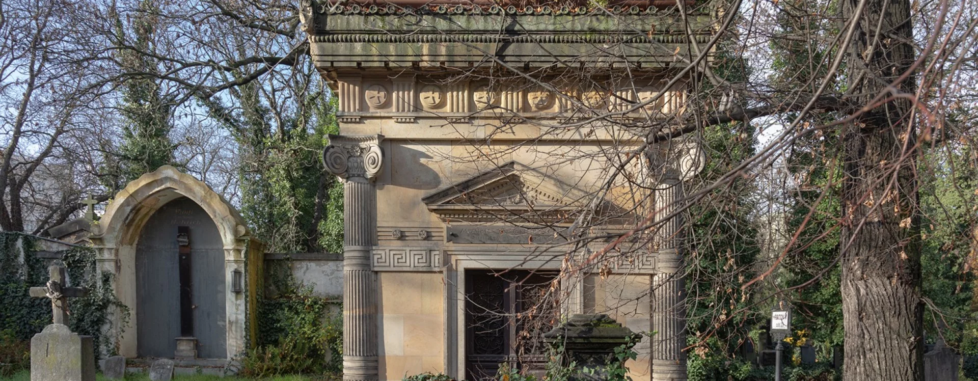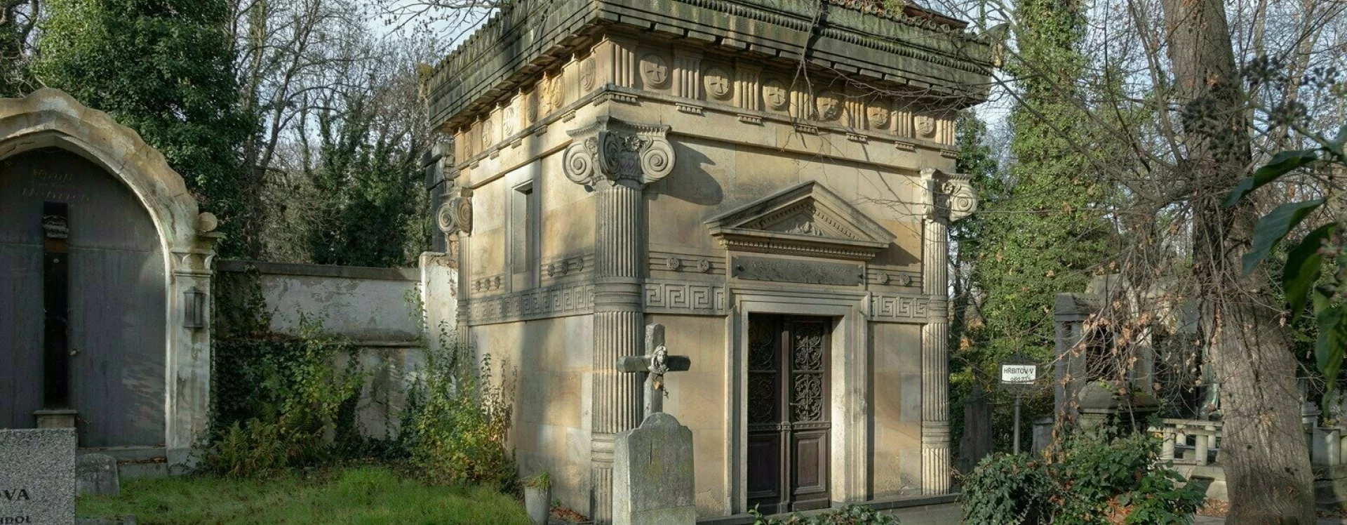 The Cechner family's chapel tomb is a remarkable example of an architect turning to Antiquity for inspiration at the turn of the twentieth century. The tomb was commissioned by Marie Cechnerová as a family mausoleum from architect Antonín Cechner, but it remains unknown whether she was his mother or his daughter.