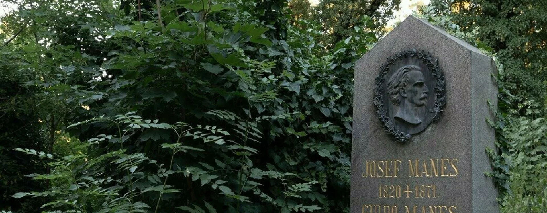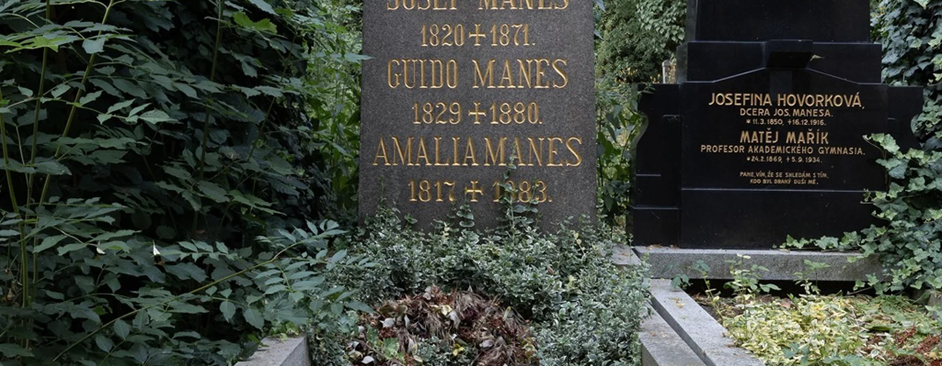 Buried alongside Josef Mánes are his siblings Quido and Amálie, who were excellent painters as well. Amálie ran their household and besides making her own art also taught painting to young girls, for at the time women were still not allowed to study at the Academy of Fine Arts. All three siblings lived and breathed art from a young age, since their father Antonín and uncle Václav were outstanding painters and teachers as well. When Josef left the Prague Academy in order to continue his studies in Munich, he met the sculptor Hans Gasser, who created the medallion whose cast, decorated with a laurel wreath, was later used on the gravestone. The original was replaced by a copy in 2008, but this did not deter its attempted theft in 2012, during which it was damaged.