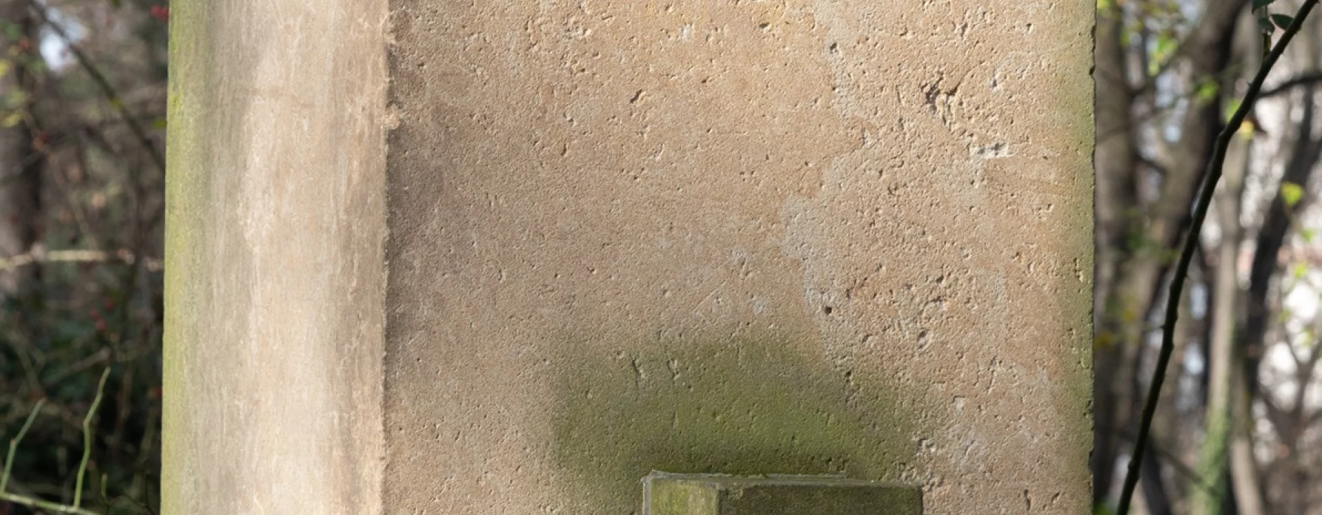 The gravestone was designed by the architect Bohumil Hübschmann in 1924 after the death of his son Zdeněk. It consists of a tall sandstone obelisk, with a dark granite inscription tablet at its foot creating a dramatic contrast. During the interwar era, Hübschmann made a name for himself through works in the style of classicist modernism. His architectural designs and urban plans for Malá Strana, Letná, the St. Peter's Quarter, and Parliament were considered groundbreaking.