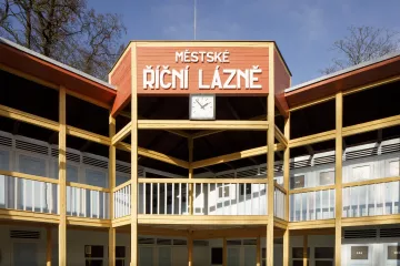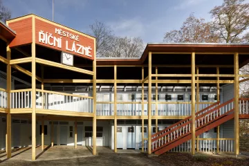 První říční lázně v Třebíčí byly vybudovány již v roce 1910 při pravém břehu řeky Jihlavy. Areál na její levém toku vznikl v letech 1933–1934 jako moderní městské koupaliště s kapacitou 1200 osob podle projektu brněnského architekta Bohuslava Fuchse. V rámci jeho tvorby jde o ojedinělé dílo, nikoli typologicky, neboť architekt měl za sebou již několik venkovních lázeňských areálů v Brně – rekonstrukci říčních lázní Riviéra (1927) či lázní na Svrateckém náhonu (1928) nebo letní lázně v Zábrdovicích(1930 – třebíčské lázně se v rámci katalogu jeho děl liší především použitím dřeva jako hlavního konstrukčního materiálu.