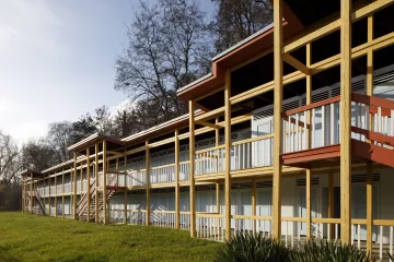 Architektura se vyznačuje lehkostí, přehledností a přímým vztahem k okolní krajině malebného údolí řeky Jihlavy.