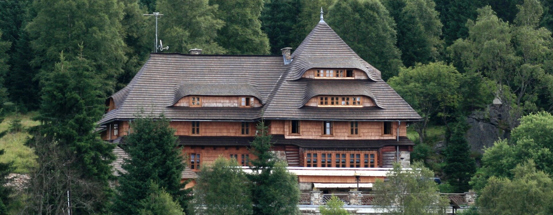 Původní vnitřní nosné stěny byly srubové, 10 cm silné, všechny vnitřní stěny opatřeny obkladem 2 cm silnými prkny. Střechu pokrýval dvojitý šindel, stejně tak vnější srubové stěny. Rovněž schodiště bylo dřevěné. V suterénu se nacházely sklepy a lednice, v přízemí rozlehlá letní jídelna, oddělená sloupy od zasklené verandy, dále malá zimní jídelna, pokoj nájemce, kuchyň, pomocná kuchyně, dva chlévy a garáž. V patře architekt umístil patnáct hostinských pokojů, v podkroví dvě noclehárny (později upraveno na společnou noclehárnu a dvanáct pokojů), na půdě dva pokoje pro personál. Nábytek podle návrhu českého kuboexpresionistického architekta, scénografa a designéra Vlastislava Hofmana dodala firma Artěl. Hofman patřil mezi zakládající členy tohoto umělecko-průmyslového družstva, ale na rozdíl od Pavla Janáka nebo Josefa Gočára nebyl ve dvacátých letech 20. století zastáncem tzv. národního slohu. Ihned po vzniku československé republiky se k tomuto tématu vyjádřil: „Národní smysl současného hnutí a umění je požadavek mravní. … Ale je jisto, že národní hnutí i národní umění tvořiti je věc osudová. Každý není však k tomuto osudu stvořen.“ Jeho „nábytek pro horskou chatu“, jak můžeme vidět na návrzích z roku 1922 vycházel spíše z jednoduchých kubizujících až empírových prvků, byl dvoubarevný a jen s malým detailem stylizovaného rostlinného dekoru.