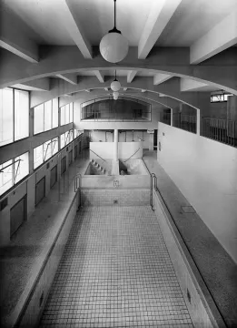 Na místě starších parních a vanových lázní byla v letech 1936–1937 realizována nová budova městských lázní podle návrhu Bohuslava Fuchse. Architekta v této době s Uherským Hradištěm již pojil profesní vztah – byl autorem přestavby městské spořitelny i přístavby Slováckého muzea.