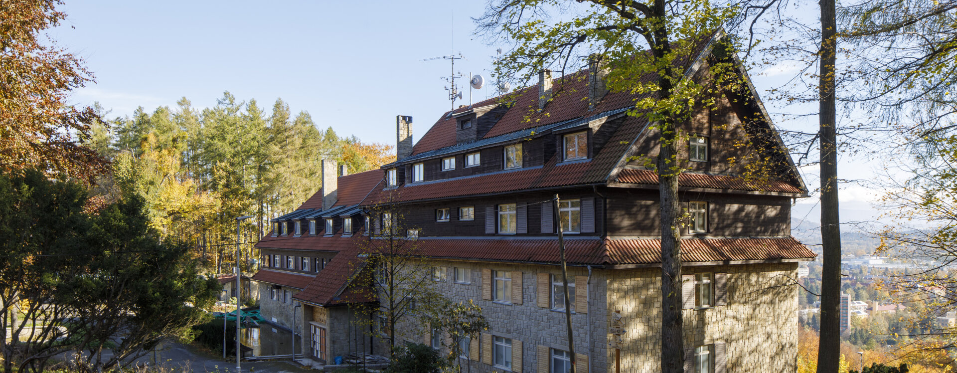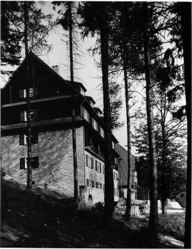 Vznik hotelu spadá do období zásadní proměny Fuchsovy architektonické tvorby. Přední představitel brněnského funkcionalismu se na přelomu 30. a 40. let postupně odkláněl od tzv. bílého funkcionalismu s hladkými omítkami, ocelí a sklem a obracel se k výraznějšímu, materiálově bohatšímu pojetí architektury. V době protektorátu hledal inspiraci v domácí stavební tradici a regionálním lidovém stavitelství, zejména v typologii horských chalup. Tento posun byl motivován nejen esteticky, ale i prakticky – válečné hospodářské poměry omezovaly dostupnost moderních materiálů - zejména oceli a podporovaly využívání místně těženého dřeva a kamene.