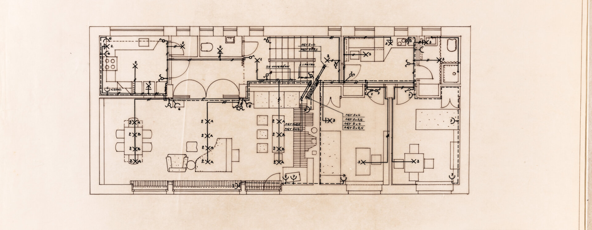 Rodinný dům v Ostopovicích byl jedním z posledních návrhů a realizací typu individuálního bydlení, které Bohuslav Fuchs provedl. Prvním z řady takto uskutečněných stavení byl už v roce 1921 navržený dům pro spisovatele Jakuba Demla v Tasově. Dům pro Alfonse a Vojtěšku Sovadinovy, kteří byli oba lékaři, a pracovali ve Vojenské nemocnici v Brně, byl projektován a realizován v letech 1968 až 1971. Jak je z dochované plánové dokumentace patrné, Fuchs v ní reagoval na aktuální světové trendy. Neobyčejná, stylově a pohledově velmi zajímavá stavba však jistě zapadá do kontextu tvorby slavného architekta. Jednopatrová budova v obdélném půdorysu směr východ–západ je umístěna v rozsáhlém, původně zahradním areálu, který rodina Sovadinových vlastnila spolu s dalšími pozemky v Ostopovicích. Jižní průčelí domu architekt formoval dvěma prostorovými plány, bíle omítnutými plochami a ustupujícími částmi s dřevěným obkladem a tmavohnědým nátěrem. Hlavní průčelní panel nepravidelného tvaru byl doplněn zdánlivě nahodile rozmístěnými pravoúhlými okny a dveřmi. Kompozici pohledově ozvláštnila oblouková střecha, původně navržená s plechovou krytinou a vikýřem v její západní části. Typ kýlové střechy Fuchs použil již dříve, při svých realizacích vil v Masarykově čtvrti ve 20. letech 20. století. O desetiletí později jej použil znovu u objektu rodinného podniku AKA ve Skryjích u Tišnova a na hotelu Vlčina ve Frenštátě pod Radhoštěm. Ostopovický dům tak v návrhu sice navazoval na jeho starší tvorbu, ale zároveň v mnoha ohledech reagoval na postmodernistické hnutí, které v architektuře zavládlo od 60. let 20. století. Dle plánů se v západní části domu nacházelo hospodářské zázemí, východní část domu byla v důsledku klesajícího terénu umístěna o půl podlaží níže, určena pro přízemní halu a sousedící garáž. Obytný prostor byl rozdělen na jídelní a společenskou část, dále zde bylo umístěno schodiště a další místnosti v patře. Bohuslav Fuchs navrhl nejen vnější a vnitřní úpravu domu, ale také uspořádání jeho okolí a zahradu, jejíž parter byl tvořen atriem s bazénkem, dvorem a příjezdovou cestou. Zdi mezi atriem a dvorem, a také ohradní zeď, byly vytvořeny z lomového kamene. Sovadinovi dům vlastnili do roku 1988, kdy jej prodali současným majitelům, rodině Prokešových, která se snaží dům a jeho okolí zachovat v původní podobě a dispozici.