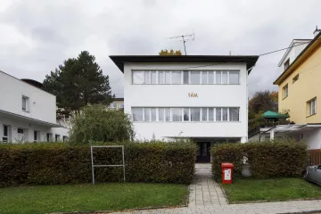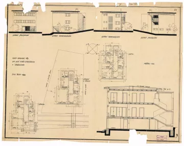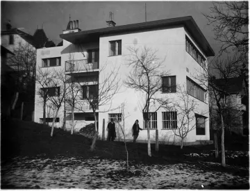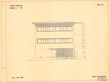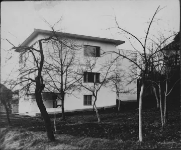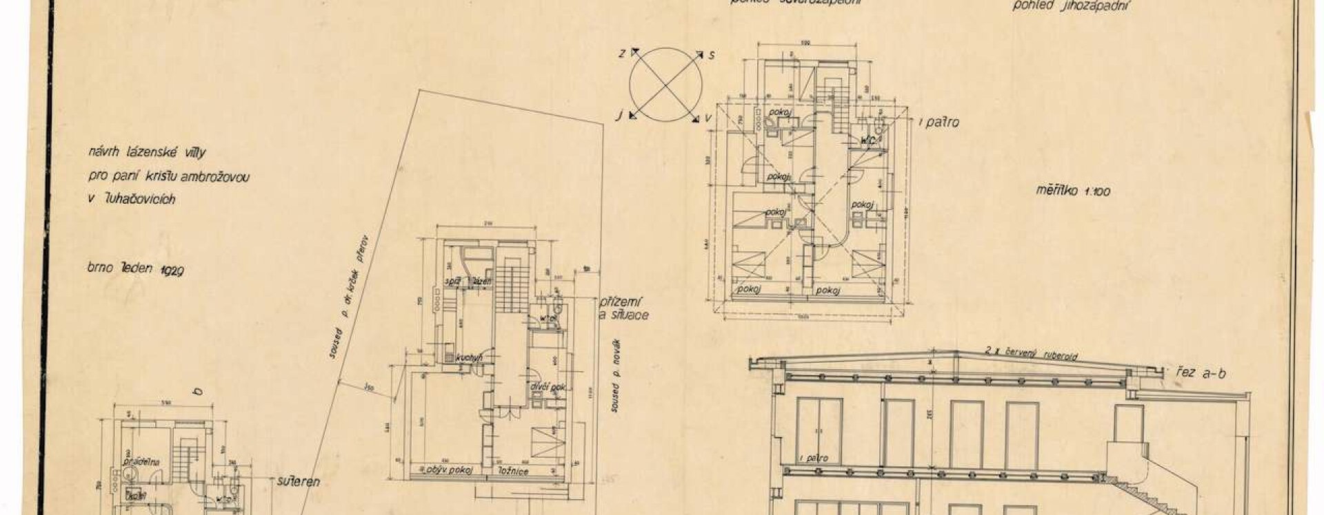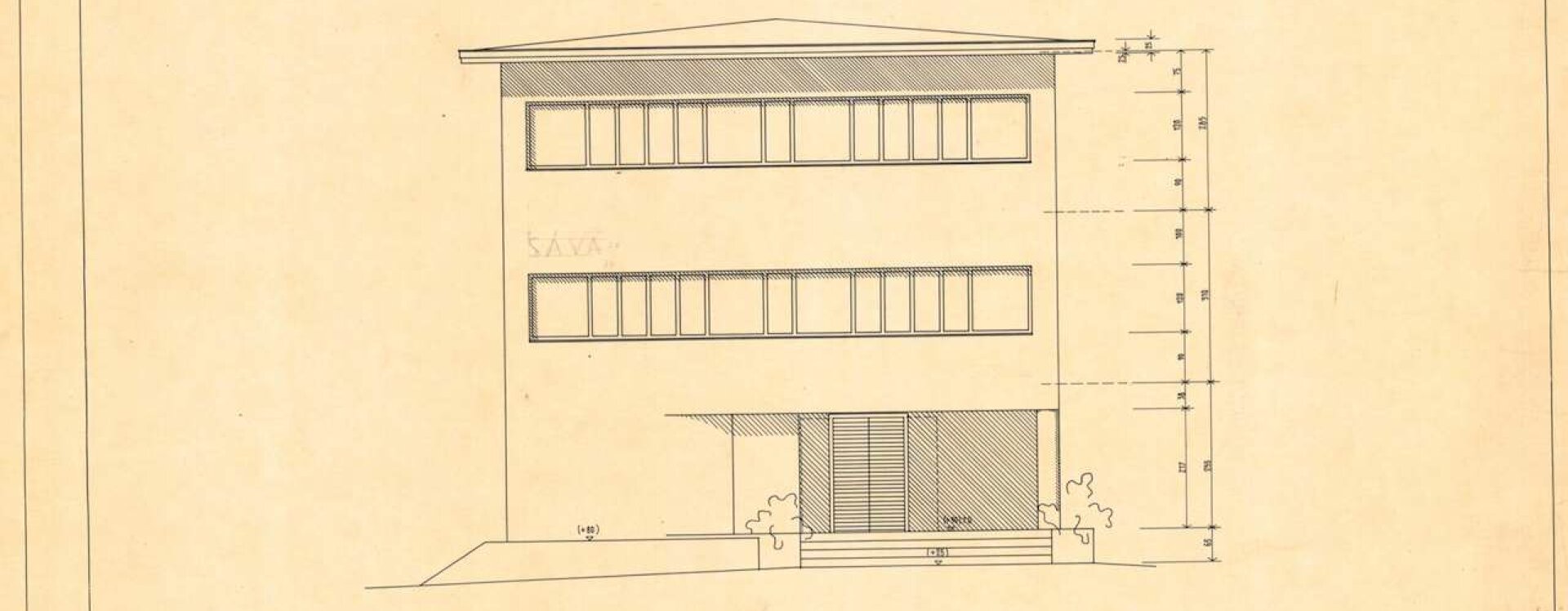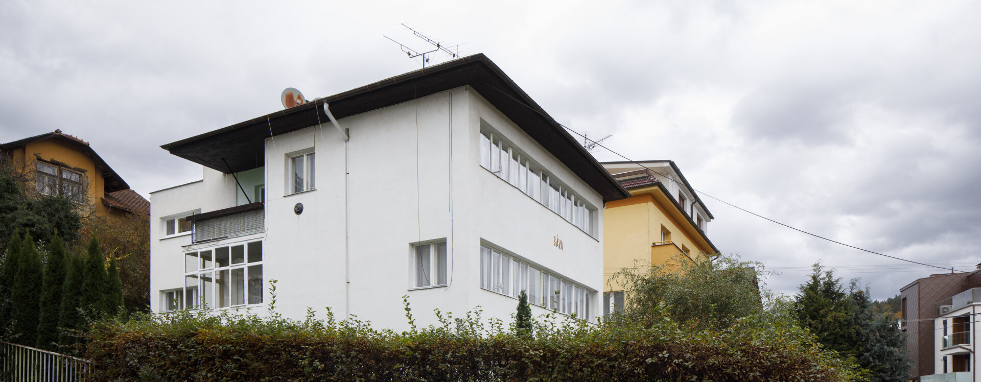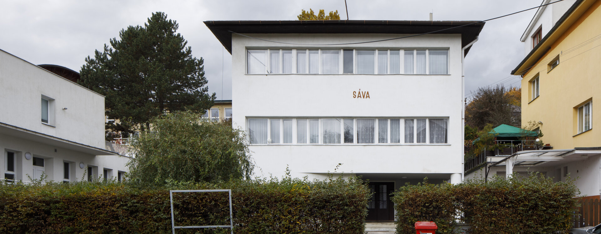 Stavbu architekt koncipoval jako odpočinkový penzion k sezónnímu pronájmu lázeňským hostům a uplatnil novou koncepci optimální prostorové skladby za předpokladu dokonalé organizace provozu. Sáva měla devět pokojů, kuchyň s příslušenstvím, společnou jídelnou a sklepy s prádelnou v částečně zapuštěné do svahu. Horizontálně řešená podoba průčelí byla docílená plochou střechou a pásem oken v přízemí i patře. Zamýšlené navození atmosféry přímořského letoviska podtrhovalo původní barevné řešení, doplňující bílou fasádu jasně modrým podbitím střechy a žlutými rámy oken. Hluboko do fasády byl prolomen vstup. Podlaží nad ním vynášel kulatý rohový sloup. Na čelní straně vznikla vstupní terasa přístupná z hlavní komunikace chodníkem přes most nad mlýnským náhonem. Terasa současně umožňovala posezení před vchodem a přímý vstup do okolní zahrady.