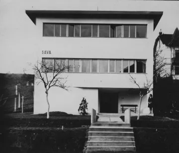 Stavebníkem penzionu Sáva byla Kristýna Ambrožová, teta Bohuslava Fuchse, která již rok před tím realizovala se svým manželem podle Fuchsova návrhu penzion Avion v Bílé čtvrti. U této stavby aplikoval architekt poznatky a zkušenosti, které získal při své účasti na rozsáhlém architektonickém projektu výstavní kolonie Nový dům v Brně-Žabovřeskách, významné součásti Výstavy soudobé kultury v Československu v roce 1928. Sáva měla připomínat styl staveb v přímořských letoviscích a současně se stát názorným příkladem moderního a finančně nenáročného způsobu výstavby a bydlení v lázeňském městě. Neměla sloužit jen k relaxaci a odpočinku, ale pro svou úspornou dispozici se také stát prototypem „domu pro každého“.