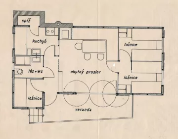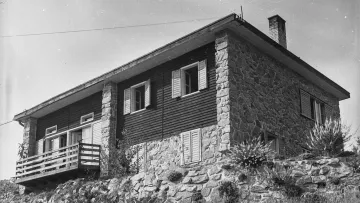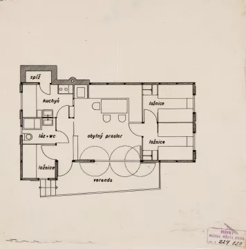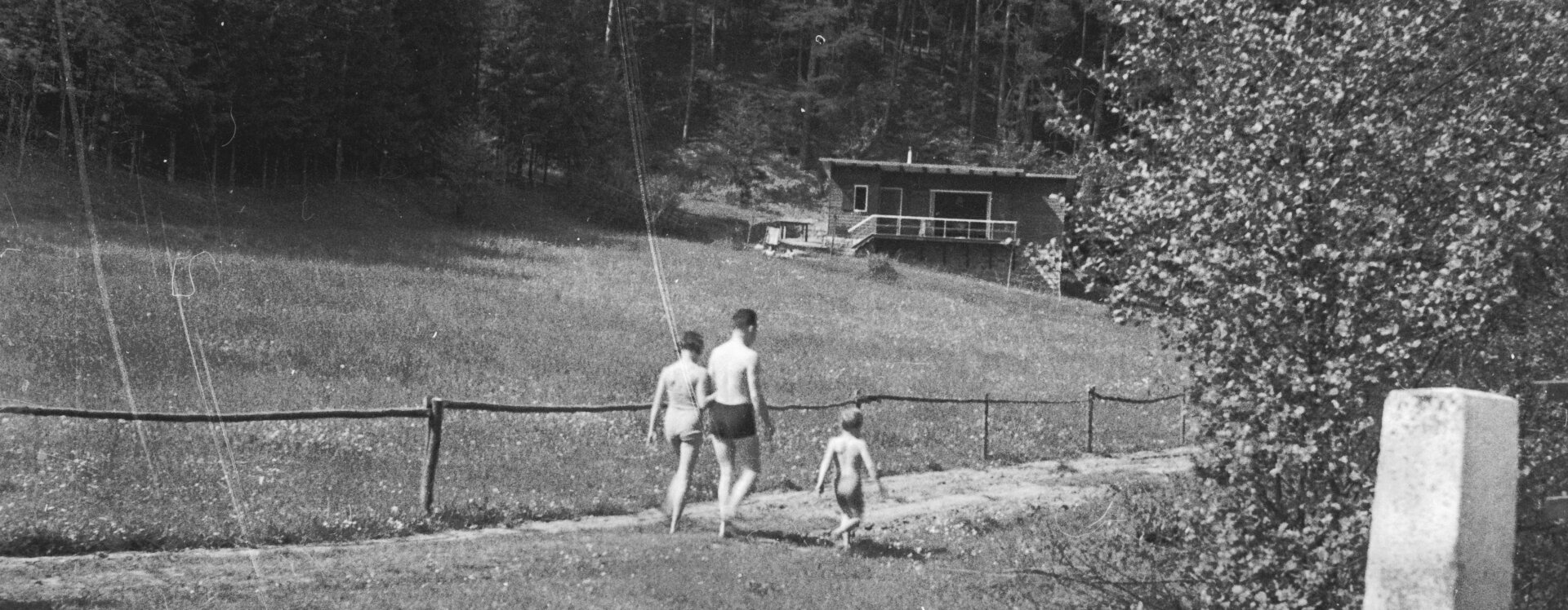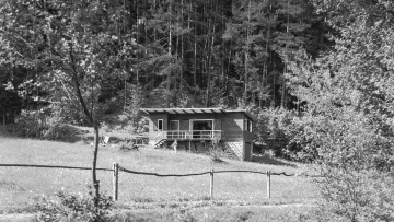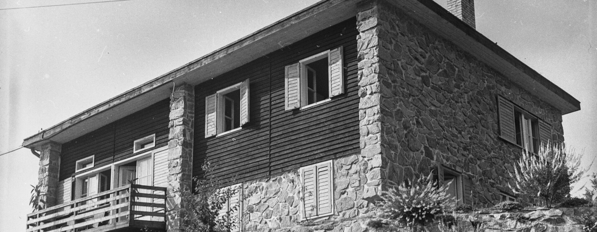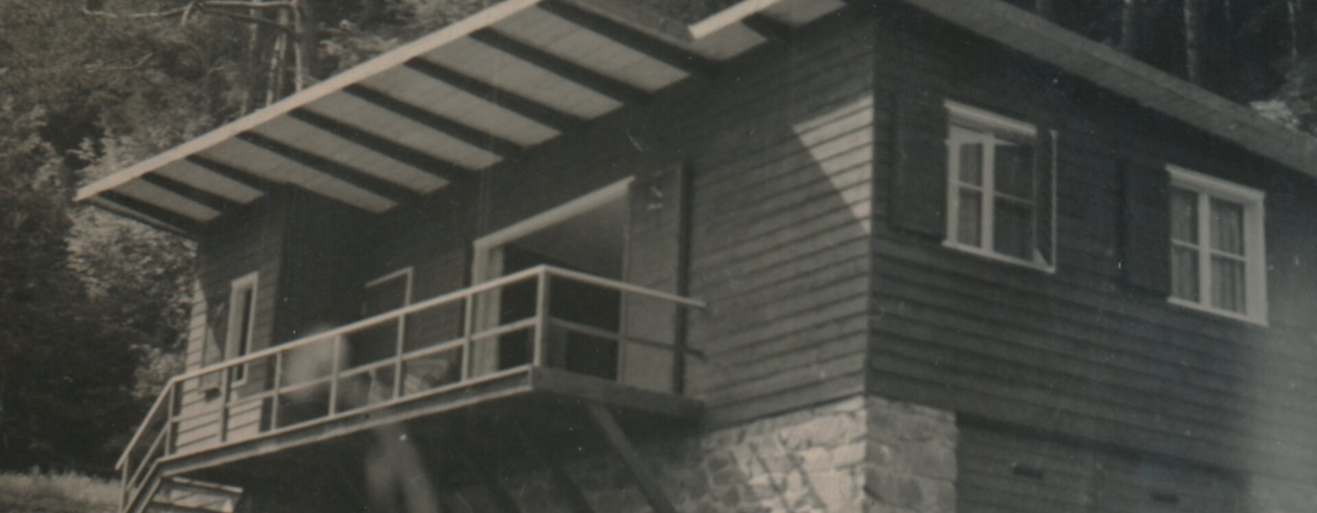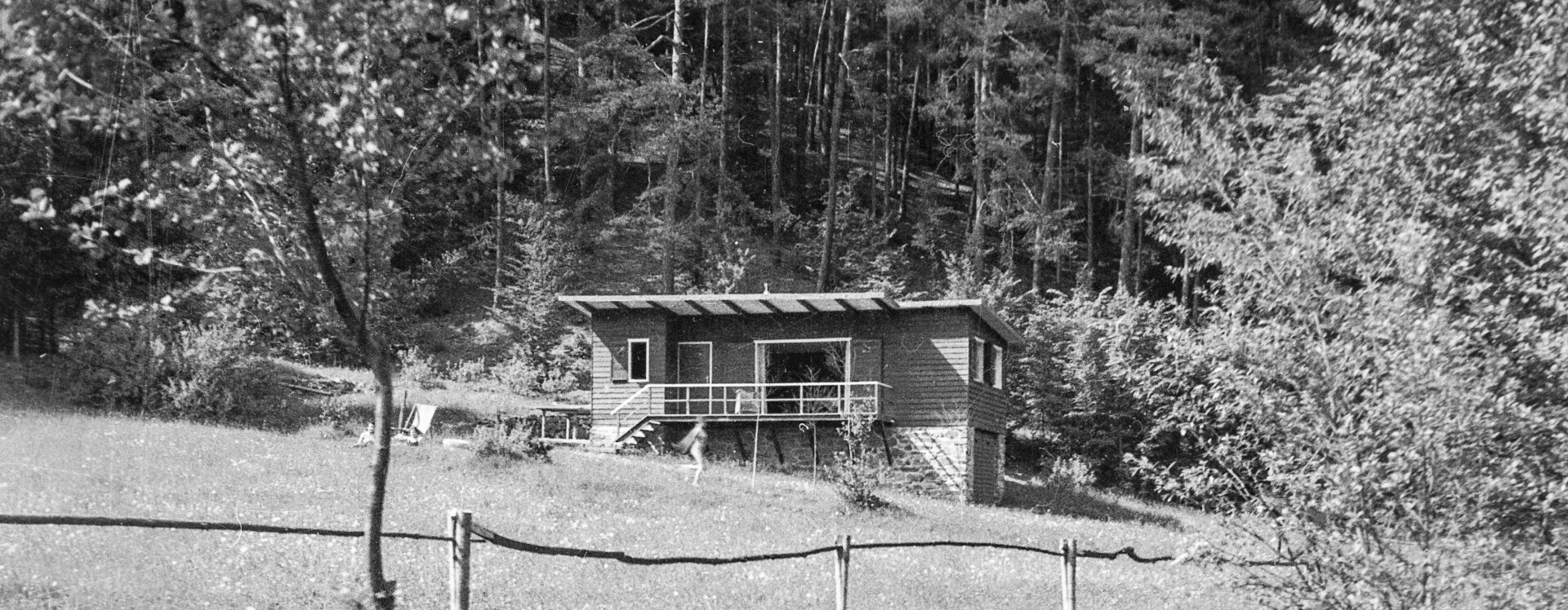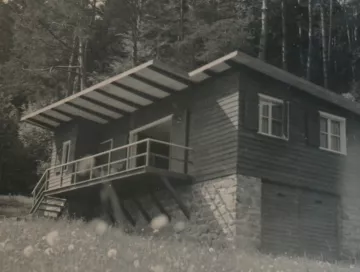 Rekreační objekt byl postaven v roce 1935 a plně odpovídal nárokům společensky žijící čtyřčlenné rodině, hledající svůj „úprk z města“. Zasazení chaty na mýtinu v těsné blízkosti lesa, její horizontalita a použité materiály vhodně komponovali objekt do přírody. Neokázalost realizace je charakterizována použitím přírodních materiálů: částečně zapuštěné přízemí obsahující garáž bylo vyzděné lomovým kamenem, v patře bylo využito dřeva. Exteriérová barevnost se omezovala na přírodně tmavý dřevěný obklad, akcentován bílými okny a červenými okenicemi. Výrazná pultová střecha přesahovala půdorys přízemí a kryla na jih orientovanou verandu. Interiér navzdory skromným rozměrům poskytoval hostům tři ložnice, drobnou koupelnu a kuchyň se spíží. Jednotlivé místnosti byly napojeny na centrální obytný prostor s krbem, prosvětlený tříkřídlovým francouzským oknem propojující interiér s verandou.