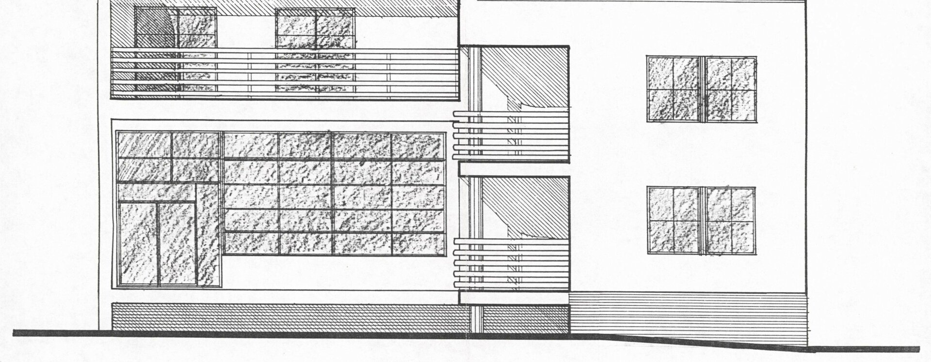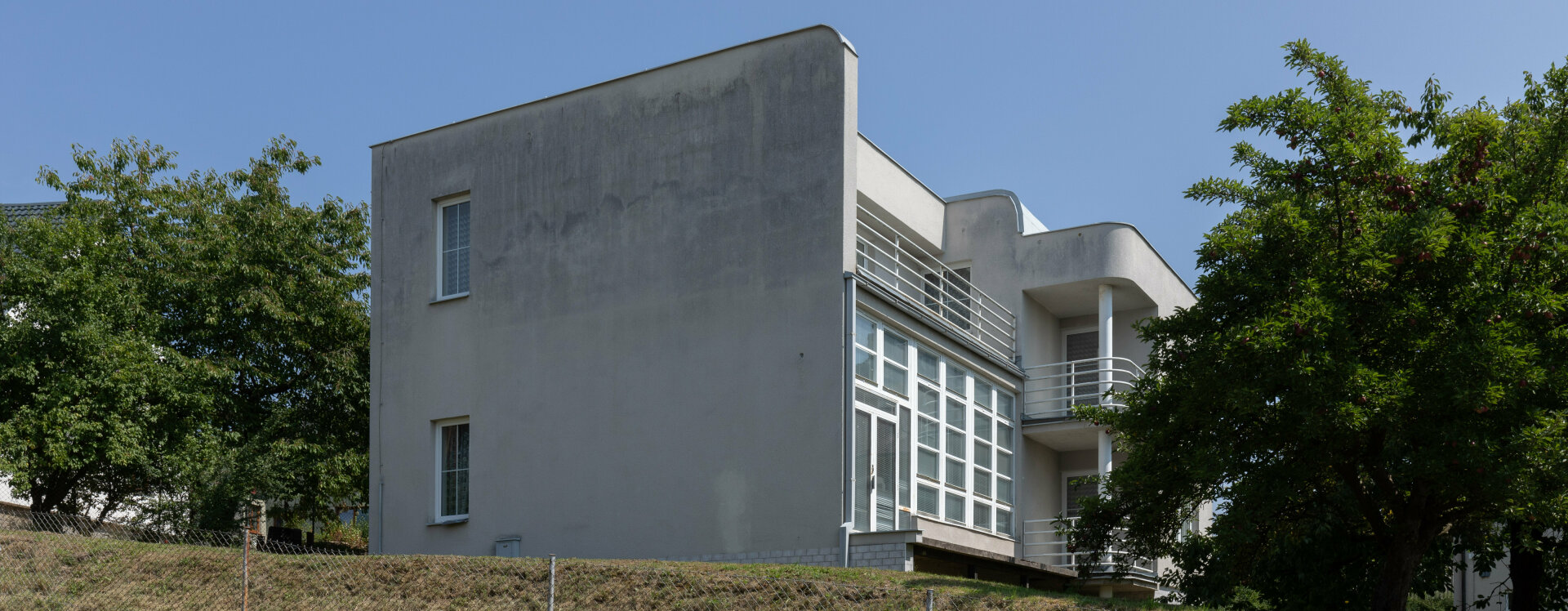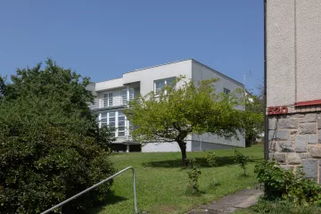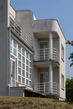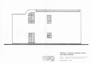 Při přestavbě se podařilo integrovat ateliér do celkového rozvržení nového objektu a udržet podmínku horního ateliérového osvětlení. Pultová střecha přístavby je nad hlavní, jižní fasádou ukončena půlválcem. Do něj jsou zasazeny balkony obytného patra, v jejichž podlaze se nacházejí světlíky ateliéru. Odsazení vnitřních obytných prostor za jižní průčelí ponechává vizuální prostor odlehčené, ale výrazné prosklené stěně ateliéru. Zaoblené prvky evokují, ve shodě s velkorysým prosklením, prvorepublikovou estetiku.