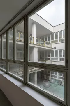 K interiéru si Driml dovolil přistoupit s větší měrou invence než k exteriéru. Zásadním prvkem je „vnitřní exteriérový prostor“, prostupující třemi poschodími, který tvoří skrytou dvoranu, vnášející do středu budovy denní světlo. Prostor kolem atria vyplňuje hlavní komunikační chodba, z níž lze vstoupit do dalších funkčních prostorů. Interiéry byly navrženy odhmotněně, ačkoliv tomu exteriér stavby nijak nenapovídá. Na vnitřním vybavení pracoval Miroslav Řepa, který si ke spolupráci přizval významné československé umělce, s nimiž se již dříve setkal při svých interiérových realizacích, například keramičku Martu Taberyovou, sklářské výtvarníky Františka Víznera a Ivo Buriana nebo malíře Zbyňka Slavíčka.