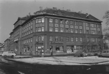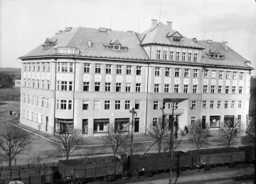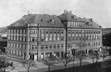 Výstavba nové dvoupatrové budovy byla zahájena 23. 6. 1925. Již od počátku investor plánoval, že „k pravému křídlu přistavěn bude příštím rokem hotel, ku křídlu levému pak v dohledné době nějaká rovněž dvoupodlažní budova“. V přízemí zamýšlel obchody.