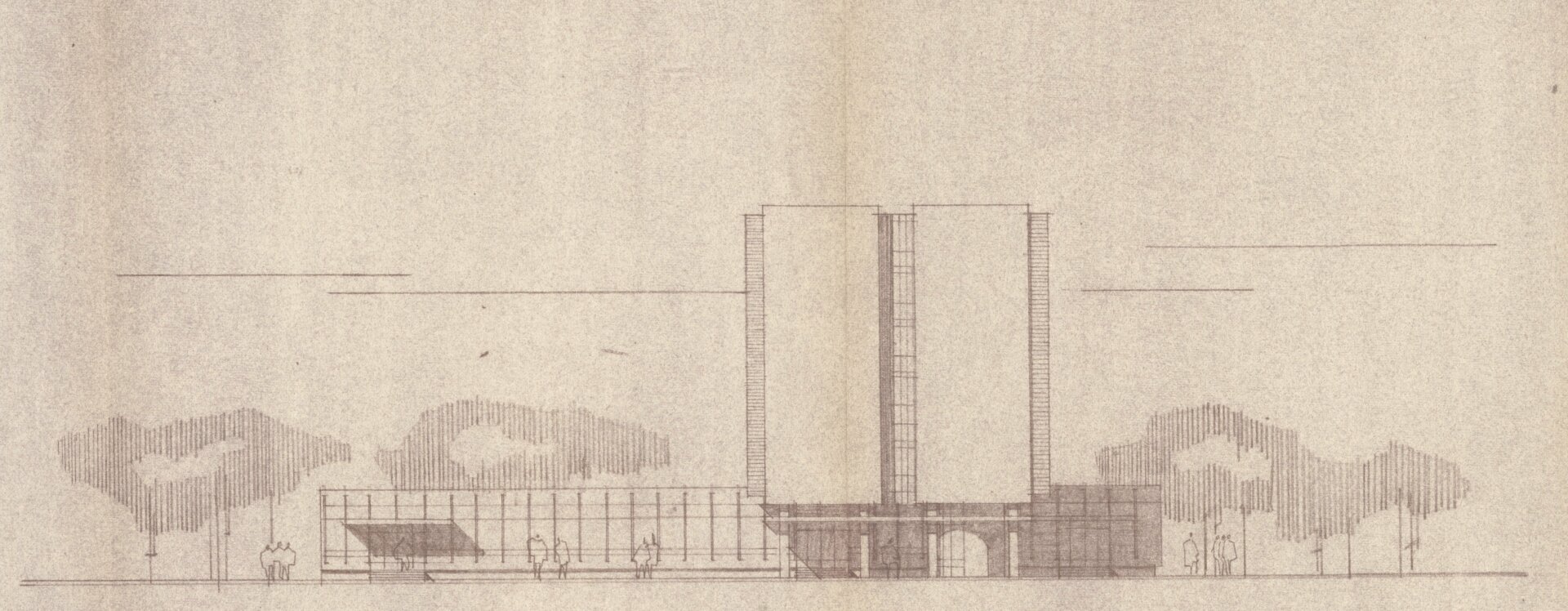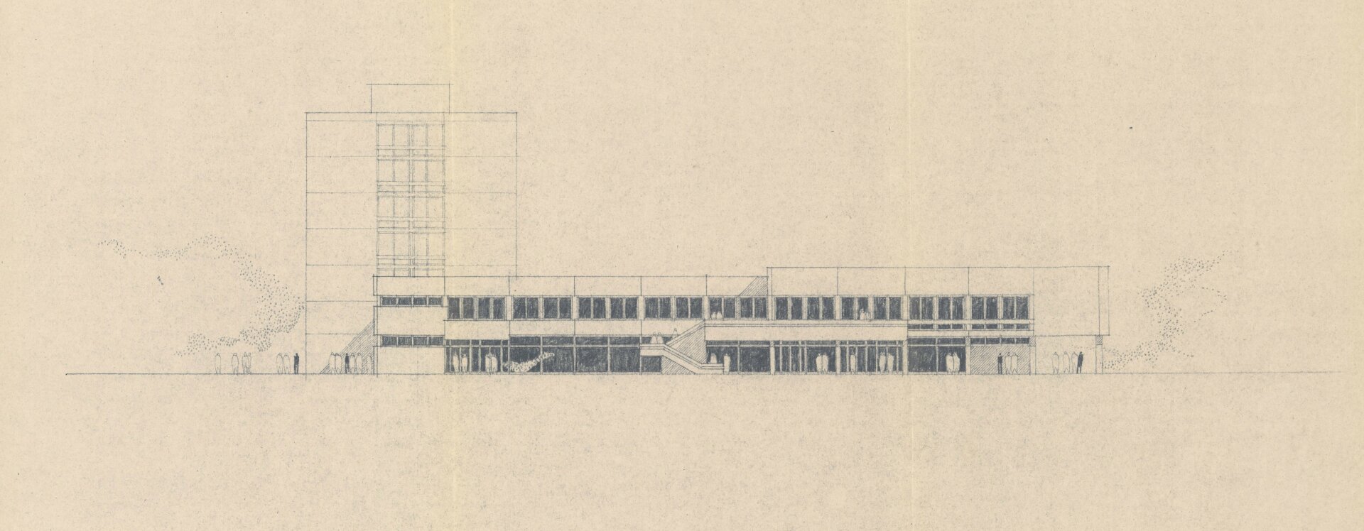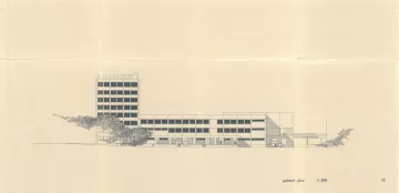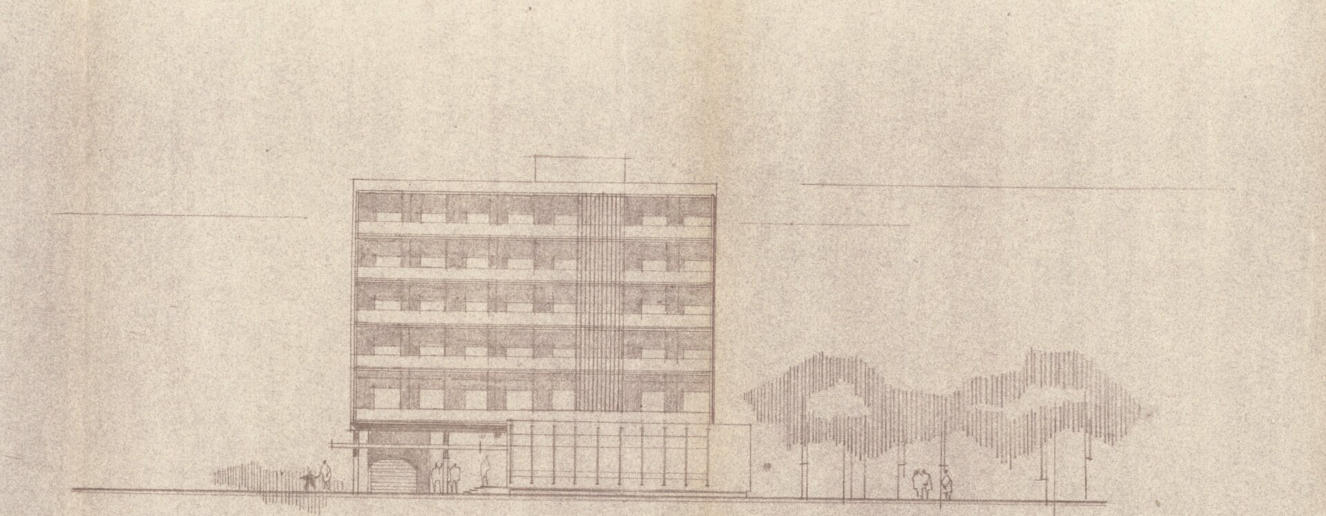 První konkrétní podobu hotelu (návrh z roku 1968), již pod patronací Restaurací Pardubice, předložil architekt Lubomír Driml (1935–2005) ze Stavoprojektu Pardubice, který v té době pro Brod dokončoval návrh sídliště v Rámech (1967, HB-VP-SN1) a obřadní síň na novém hřbitově (1967, HB-2949). Hotel s kapacitou devadesáti lůžek situoval k průmyslové škole podél hlavní komunikace. Objekt byl zároveň součástí širšího záměru na transformaci této lokality, formulovaného v Koncepci přestavby města rozpracované v podrobném územním plánu Gottwaldova náměstí (listopad 1968). Hotel zde figuruje jako integrální prvek tzv. centra občanské vybavenosti spolu s maloobchodními a službovými provozy o ploše přesahující 3 200 m². Tyto koncepce sledovaly dobovou snahu o komplexní přestavbu historické blokové zástavby ve prospěch novodobých funkcionalizovaných struktur.