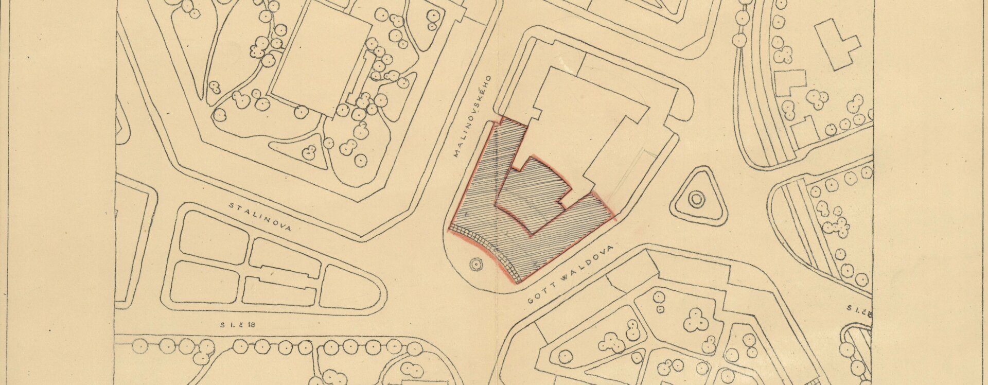 Od počátku byla centrem zájmu lokalita kolem dnešního kruhového objezdu u kostela sv. Kateřiny, tehdy Gottwaldova náměstí, přecházející do oblasti s převážně historickou blokovou zástavbou kolem Humpolecké ulice směrem k dnešní křižovatce.