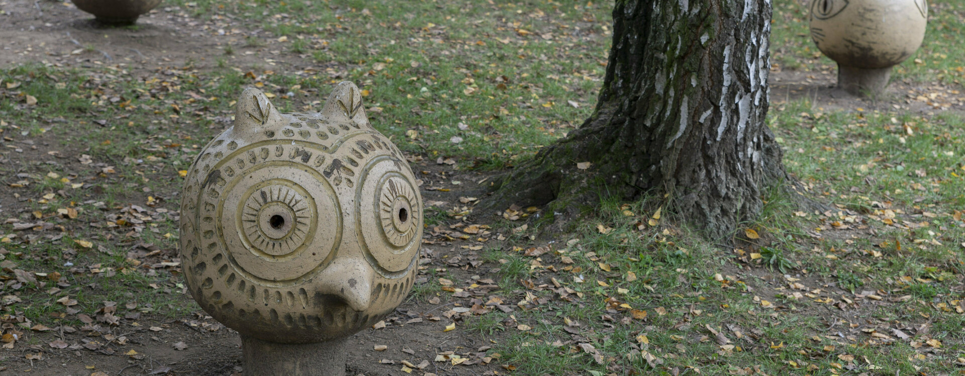 Tři objekty představují zvířata – kočku, sovu a motýla či hlemýždě – a jsou komponovány jako stranově symetrické, se dvěma tvářemi. Dvě plastiky zobrazují jevy ze světa rostlin – kulovitý objekt připomíná zrnko pylu či semínko, vyšší má tvar pupenu. Další tři plastiky s rostlinnými motivy se nedochovaly.