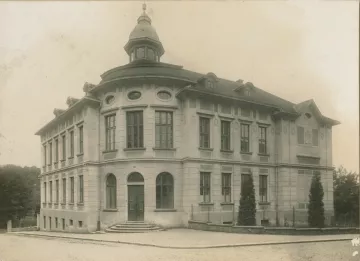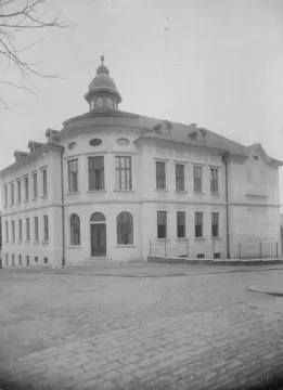Prvním působištěm školy byla bývalá budova odsvěcené kaple sv. Barbory v sousedství Měšťanské chlapecké a dívčí školy na dnešním Rubešově náměstí. Od počátku byly tyto prostory považovány pouze za prozatímní a školní kuratorium usilovalo o výstavbu nové budovy pro sto studujících.