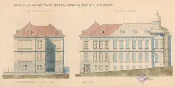 Přípravy nepodcenili, vyžádali si plány budov z Českých Budějovic a Hořic a po jednání s vedením města jakožto investorem v roce 1913 zastupitelstvo odsouhlasilo výstavbu. Z několika možných návrhů byl pro stavbu vykoupen pozemek patřící rodině Štáflově s domkem č. p. 5 v sousedství nově vybudované obecné školy. Stavba obchodní školy tak uzavřela novou Školskou ulici směrem k parku Budoucnost.