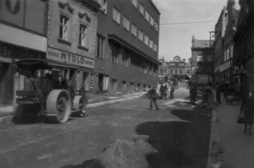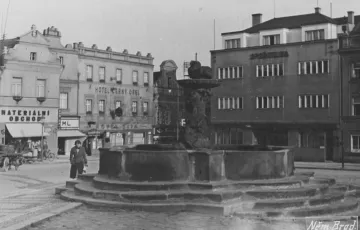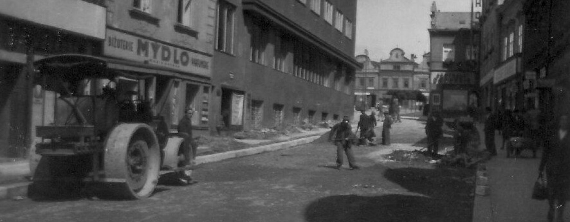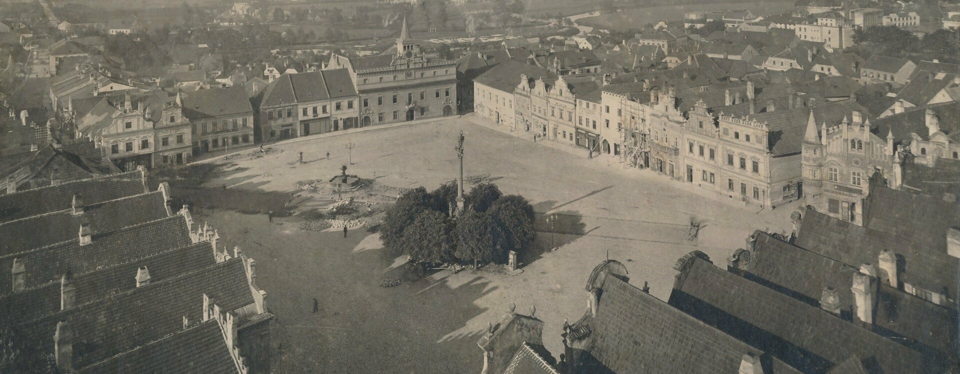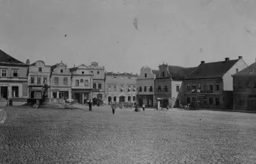 Tato vize se naplnila v červnu 1930, kdy spořitelna, tehdy již významná finanční instituce města, působící jako pobočka Národní banky československé, dokázala i přes zamítavé postoje památkového úřadu a odpor široké veřejnosti prosadit za podpory městské rady výstavbu první moderní budovy na náměstí. Objektu musely ustoupit dva domy ze 17. století s bohatě zdobenými renesančními trámovými stropy, figurující v památkových seznamech již od 20. let 20. století. Spořitelna ve svých plánech nerespektovala ani požadavek, aby na jejich místě „vystaven [byl] dům nový, který nesmí rušit starobylý ráz … náměstí“. Starosta Robert Neuern, jenž při jednáních zastupoval spořitelnu, vysvětloval kroky tím, že architekti „chtějí dobu charakterizovati dobovými stavbami“. A tak se spořitelně podařilo, i přes systematickou, téměř třicetiletou práci bývalého c. k. konzervátora města Zdeňka Wirtha a jeho kolegů památkářů, porušit tolik obdivovaný jednotný historický ráz náměstí. Architektem stavby, vzešlým ze soutěže, se stal František Albert Libra (1891–1958).