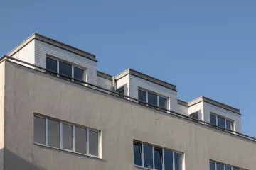 Další patra a část podkroví byly určeny pro byty úředníků. Na půdu umístil prádelnu a žehlírnu, do suterénu archiv, registrovnu a byt (pravděpodobně pro správce). Díky svažujícímu se terénu směrem k Dolní ulici vznikl prostor i pro malý obchod. Celý objekt železobetonové konstrukce vytápělo ústřední topení.