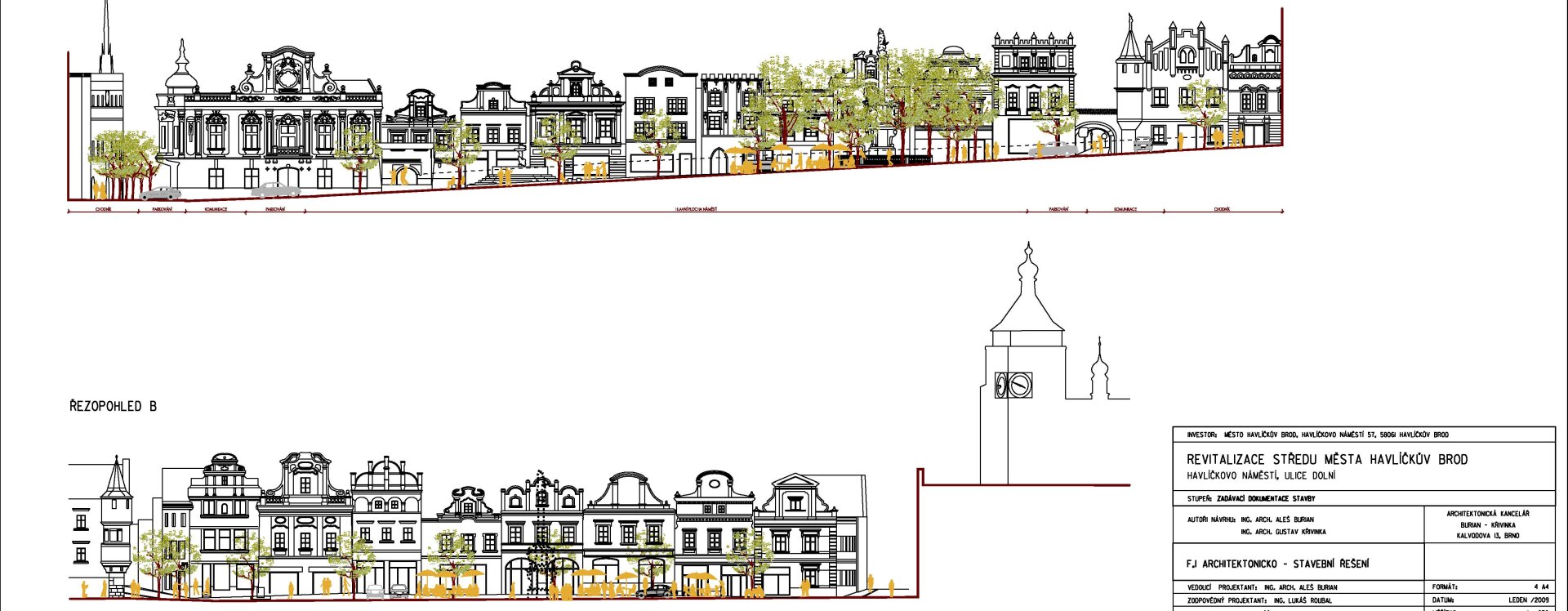 Architektonická kancelář Burian-Křivinka. Rekonstrukce Smetanova náměstí v Havlíčkově Brodě - 2. etapa, dokumentace pro stavební povolení. 2017.