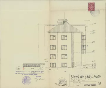 Návrh nájemního domu svěřil Oldřichu Liskovi, absolventu drážďanské uměleckoprůmyslové školy, jehož kancelář patřila ve 20. – 50. letech 20. století mezi nejvýznamnější projekční instituce severovýchodních Čech. Projekt pro manžele Peychlovy patří k jeho posledním předválečným realizacím.