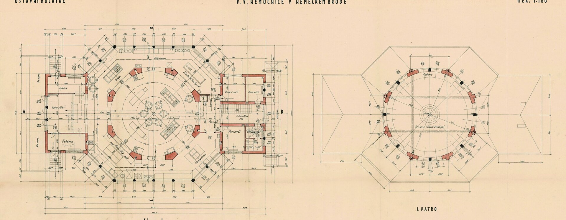 Jediný architektonický úkol, umělecký program, který si architekt v tomto případě zadal, spočíval v naplnění požadavku funkčnosti kuchyně, která vařila pro poměrně rozsáhlý nemocniční areál. V rámci maximální účelnosti a přehlednosti celého provozu zvolil centrální dispozici s tím, že do pomyslného středu budovy situoval vývařovnu. S takovým řešením se setkáváme i u jiných staveb tohoto typu, výjimečnost jeho návrhu tkví v přiznání kruhového dispozičního schématu (oktogon) i v půdorysu stavby, který se pouze na severní a jižní straně prodlužuje o obdélníkové bloky.