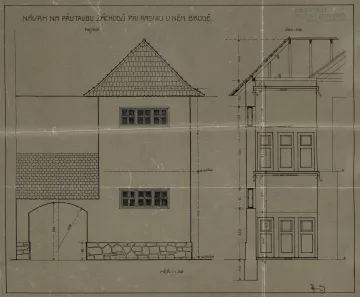 Janákův návrh, podpořený následným pochvalným dopisem Z. Wirtha, přišel 14. 11. 1912. Jednoduchý atikový štít navazující na historický ráz náměstí, jinak současný ve svém detailu, který odkazoval ke špičkovým příkladům kubistické architektury u nás, byl bohužel pro zástupce malého města příliš progresivní. K realizaci projektu nedošlo a Wirthova obava se v plné míře naplnila, jak se později dozvěděl od předsedy brodského kuratoria Josefa Němce: „Radnice se již bourá, ale štít nebude dělán podle plánu Janákova; nelíbil se a takový kterýsi odborník pražský, jehož bral starosta na radu, ho zhaněl. Bude to poněkud změněný plán, který jste zde na podzim viděl“. Šupichova firma fasádu podle zásahů neznámého odborníka z Prahy ještě dvakrát během stavebních prací upravovala. Celá budova byla nakonec v mírném časovém skluzu dokončena v říjnu 1913.