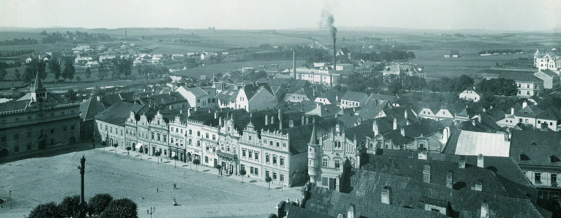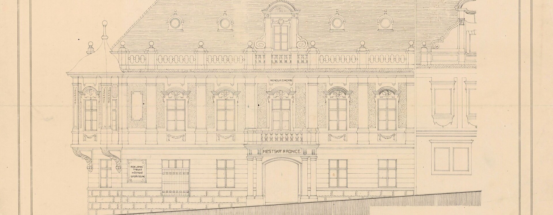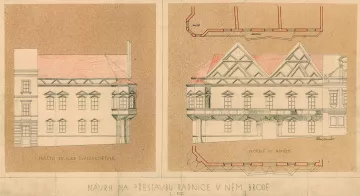 Proměna začala v roce 1910, kdy starosta města MUDr. Eduard Šubrt během jednání zastupitelstva přednesl záměr, „…aby dům radnice a domu obecního … byly adaptovány, slohovou facadou a štítem opatřeny…“ Plány měl připravit městský stavitel a „…o návrh slohové fasády by byl požádán architekt Jurkovič….“ Po něm se požaduje fasáda, která by harmonizovala „v každém směru se starobylým rázem náměstí“. Místní c. k. konzervátor Zdeněk Wirth doplňuje záměr o svou vizi: „Navenek stačí buď dnešní fasáda nebo ať se dá nová, ale jednoduchá, bez štítů, beze štuku, bez kartuší ap.“ Obává se „dekorativismu, ve formě přidání pseudobarokních nebo renesančních štítů“.