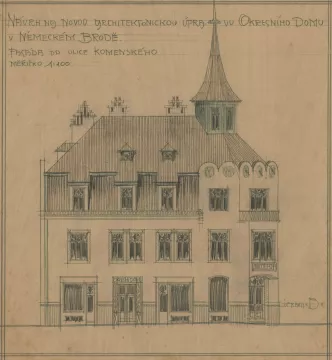 S výstavbou Okresního domu, jenž měl za úkol v prvé řadě vytvořit důstojné prostředí pro okresní orgány, se započalo v roce 1910. Jeho podoba vyšla z anonymní architektonické soutěže. Kdo byl autorem vítězného návrhu, proto s určitostí říci nedokážeme.
