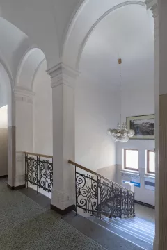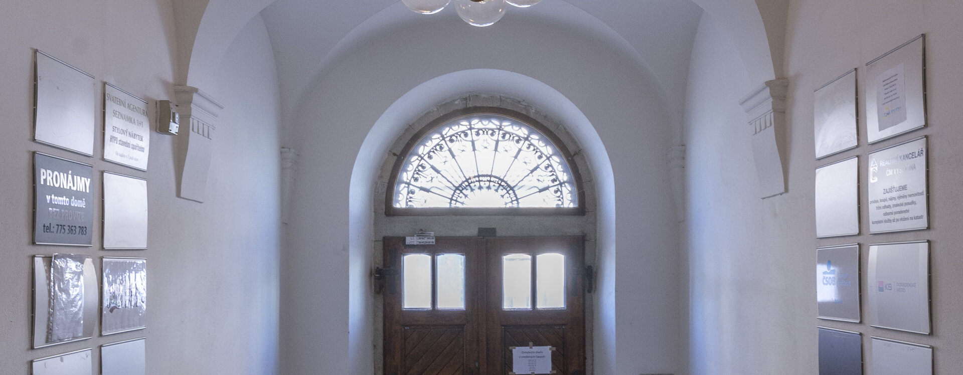 Vnitřní prostory byly rozděleny na suterén, určený pro sklady, sklepy a byt (pravděpodobně správce), přízemí, zahrnující prostory pro komerční využití (3 obchody) a velkorysý třípokojový byt s výhledem na řeku, a nejvyšší patro s částí úřední, včetně kanceláře starosty v nejreprezentativnější nárožní místnosti s balkonem, a částí plánovanou pro hospodářskou záložnu.