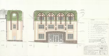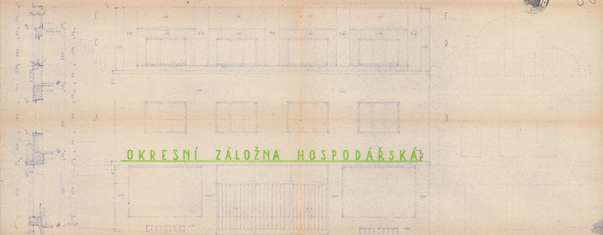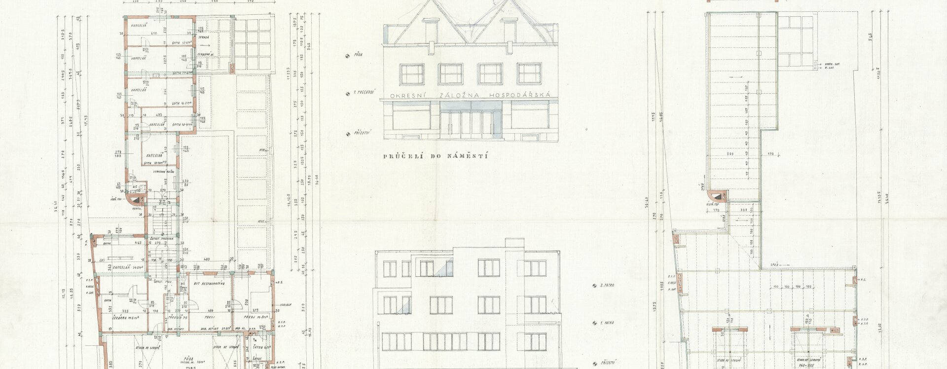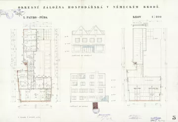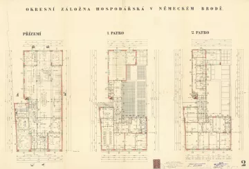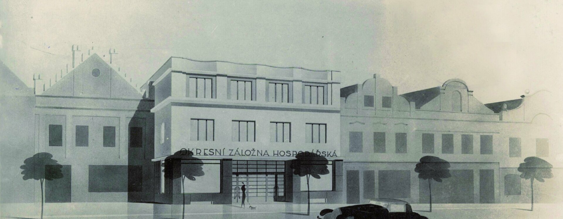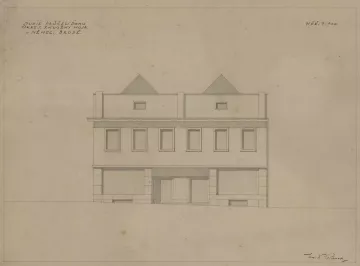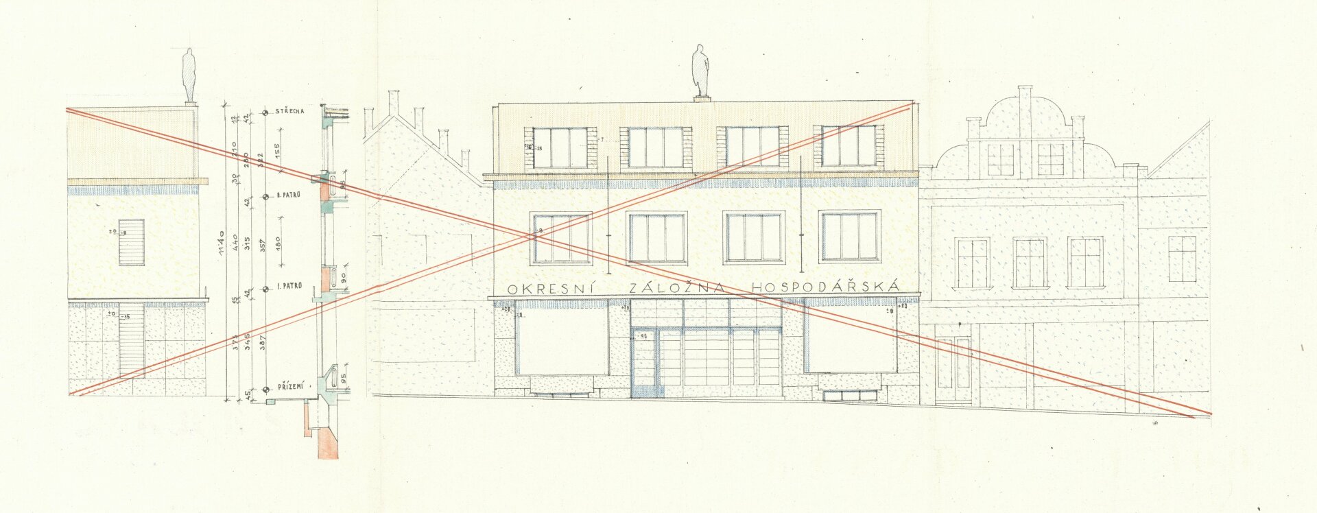 Plány pro dvoupatrovou polyfunkční budovu s moderním hladkým průčelím předložili etablovaní pražští architekti, „specialisté na výstavbu záložen“, František Stalmach (1903–1985) a Jan Svoboda (1903–1985) již v dubnu 1934. Proti návrhu se okamžitě zvedla téměř jednotná vlna nevole – tentokrát již nejen místní patrioti a Státní památkový úřad jako poradní orgán, ale i Rada města jako výkonná složka stavbu odmítli.