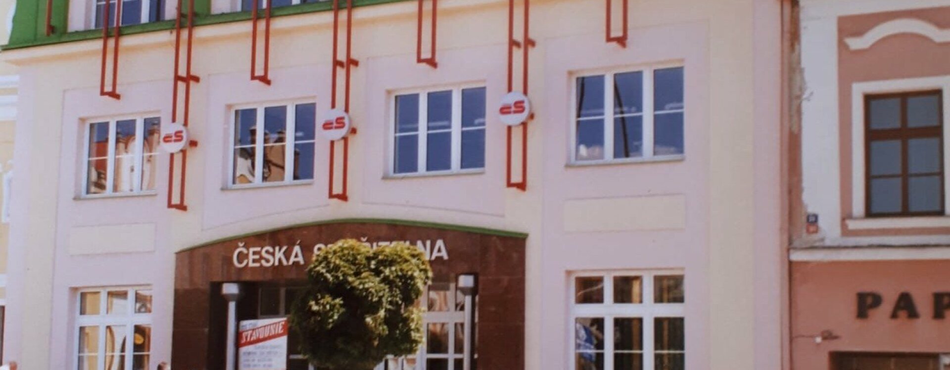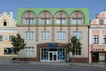 Mnohem smutnější okamžiky pro náměstí a budovu nyní již České spořitelny nastaly o necelých šedesát let později, během její rozsáhlé rekonstrukce (1992–1993) podle návrhu architektonického studia A. J. T Praha, a to na základě stanoviska Památkového ústavu Pardubice, který souhlasil „s architektonickým pojednáním průčelí, které je lépe přizpůsobeno celému výrazu náměstí, než je stávající fasáda“. Interiér z této přestavby však dlouhou dobu nepřečkal. Jeho poslední změna proběhla v roce 2015 dle projektu architekta Zbyňka Zavřela z ateliéru K4.