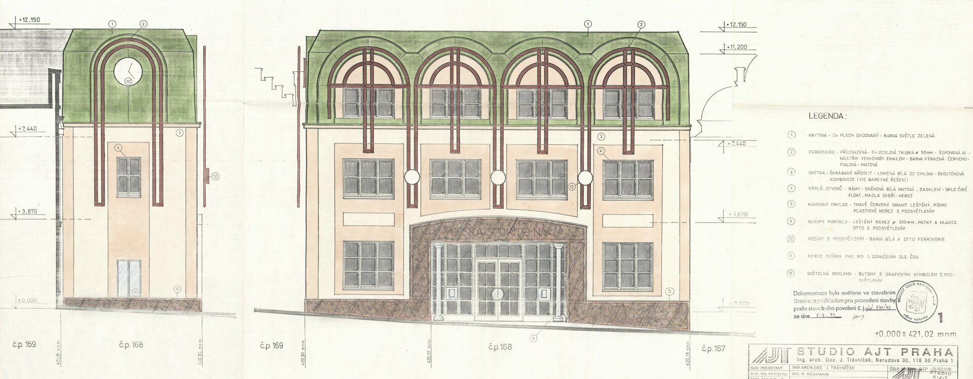 Památkový úřad ve svém oficiálním vyjádření s ohledem „na sociální otázku celé kauzy“ prohlašuje, že „sice neopustil od doposud hájeného stanoviska, […] nečiní [však] dalších námitek proti zřízení druhého patra jakožto patra atikového se dvěma valbami sedlových střech za touto atikou“. Na základě tohoto rozhodnutí je během několika dnů (16. 5. 1935) vydáno nové – nikoli však konečné – stavební povolení. Poslední ústupek záložně učiní Rada města v září 1935, když odsouhlasí, aby se na fasádu do druhého patra vrátila opět pouze atika.